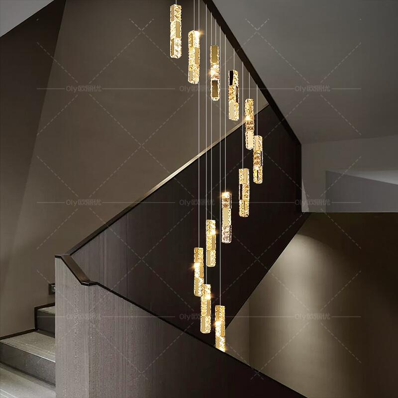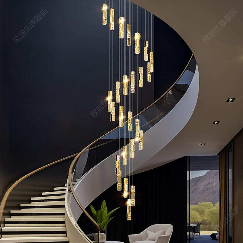 复式楼楼梯吊灯长吊灯2025新款别墅挑空客厅吊灯loft公寓水晶吊灯