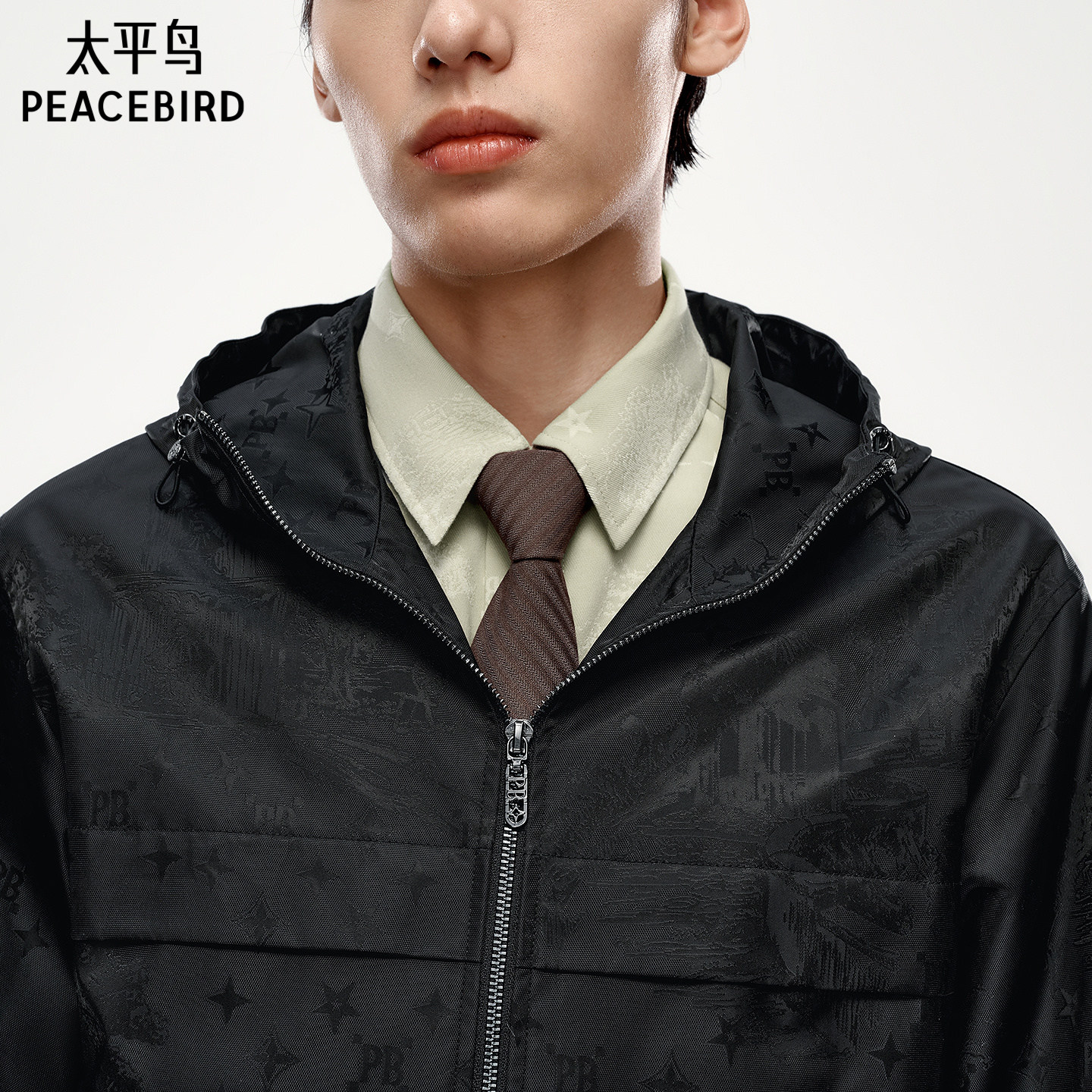 【商场同款】太平鸟男装夹克25秋季新款提花连帽外套 B1BCF3320
