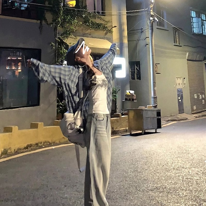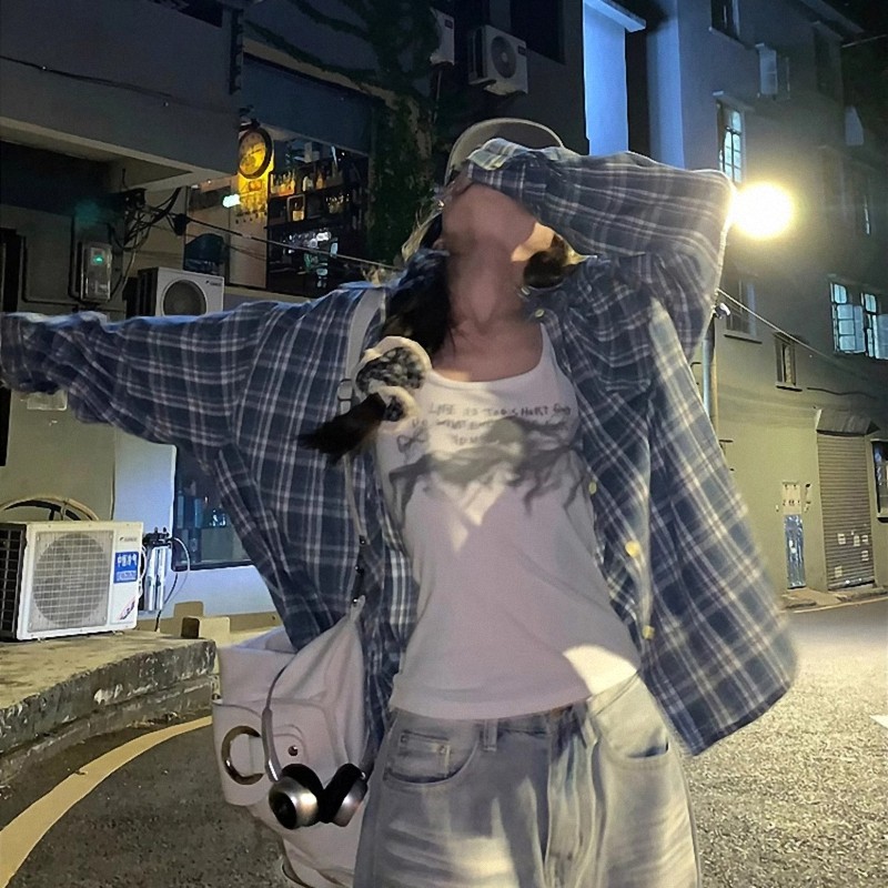 秋冬女装批新款发长袖休闲宽松复古衬衣中长款慵懒风磨毛格子衬衫