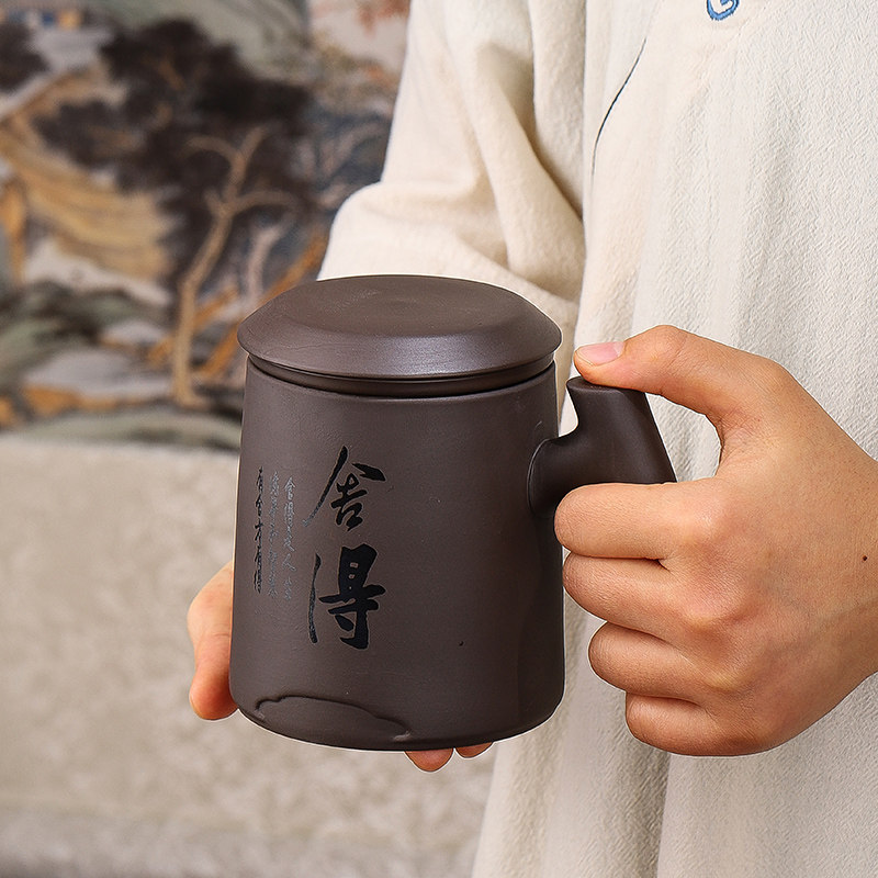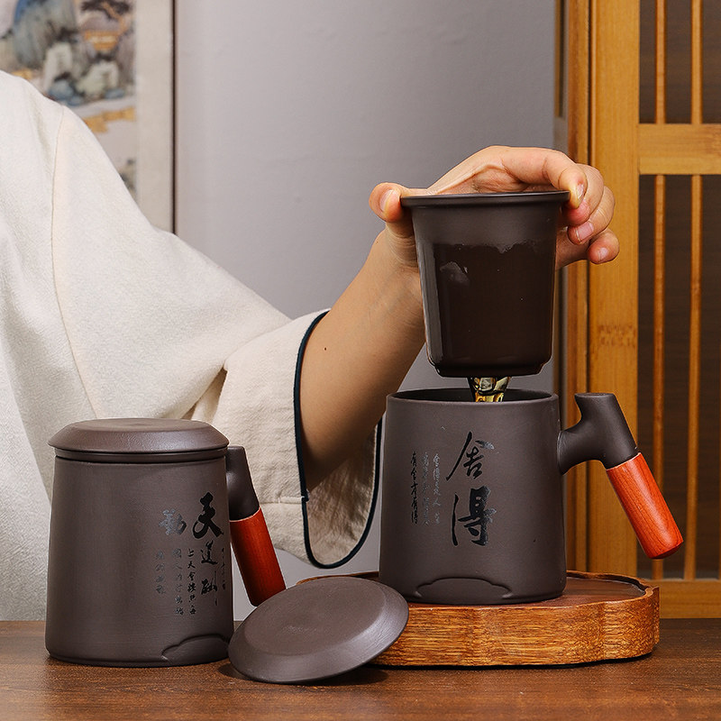 紫砂茶杯个人专用泡茶杯陶瓷家用办公室茶水分离马克杯大容量水杯