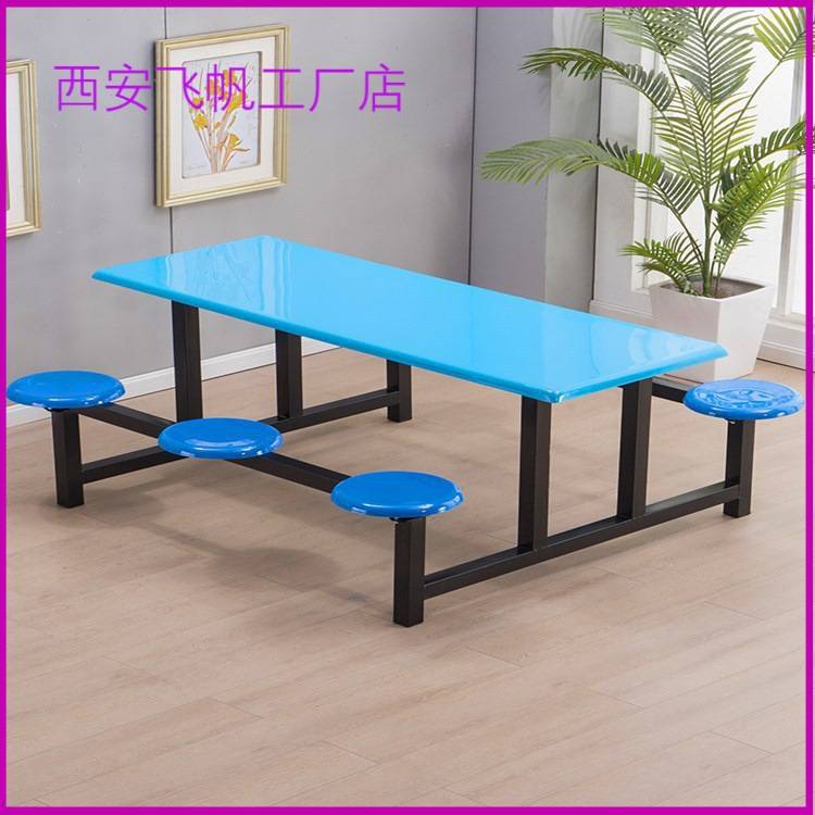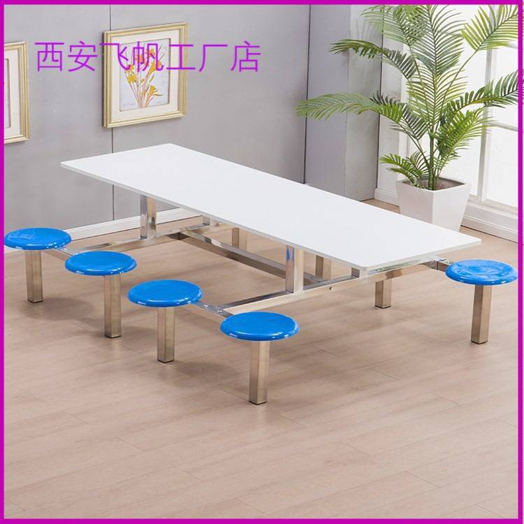 西安食堂餐桌椅4人8人位钢制学校学生组合员工餐桌厂家不锈钢