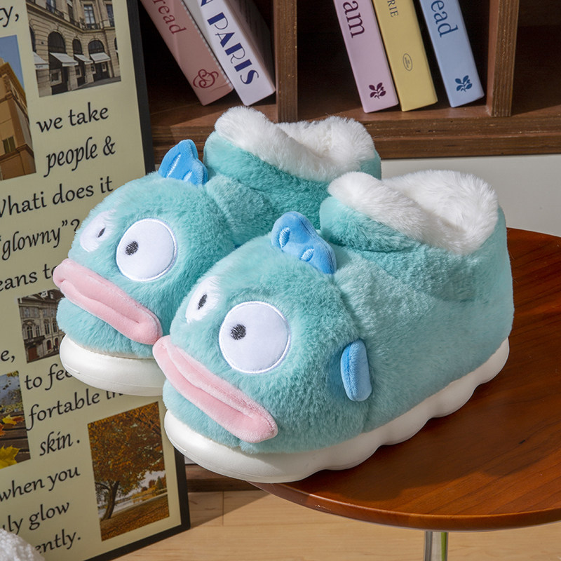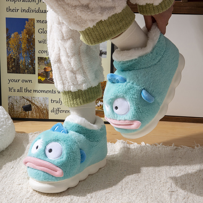 鲨际正版丑鱼棉拖鞋保暖搞怪棉鞋
