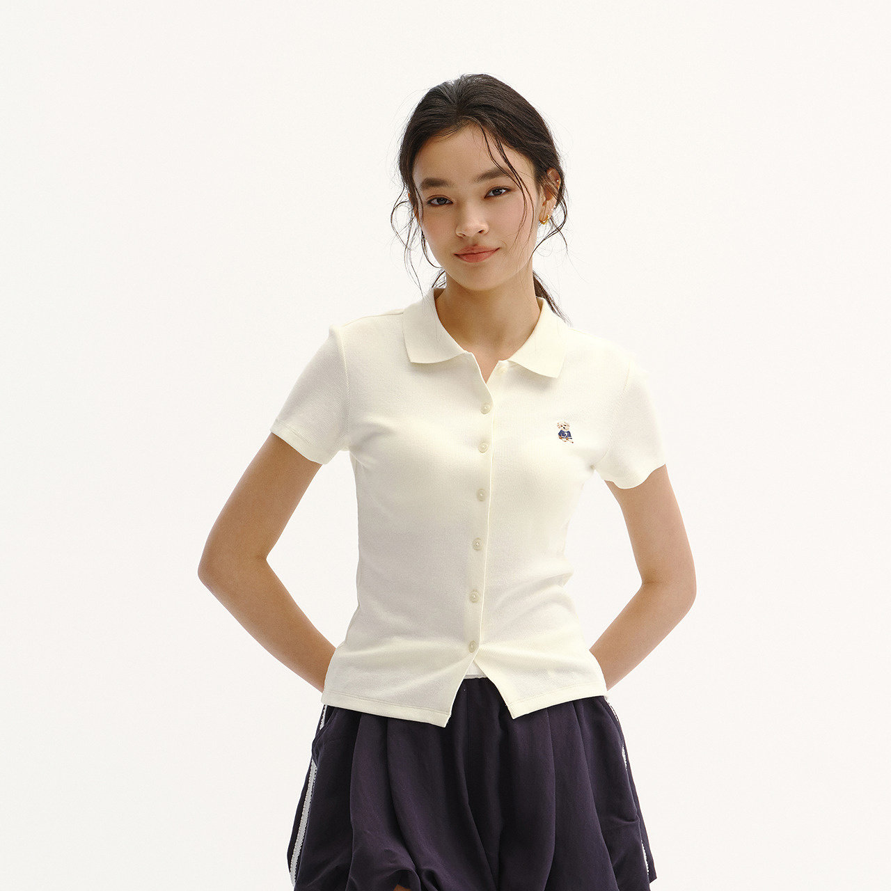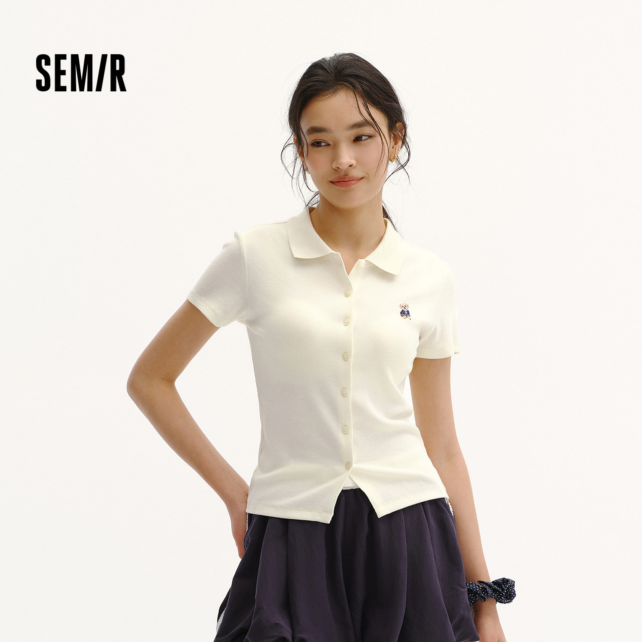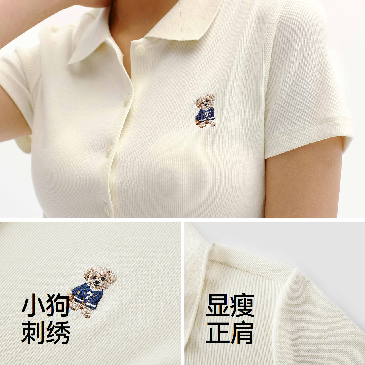 商场同款|森马POLO衫女夏小狗刺绣紧身正肩2026新款气质简约开衫M