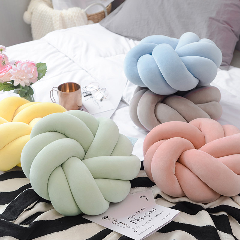 北欧ins风手工打结抱枕丹麦创意靠枕垫沙发床头飘窗儿童房装饰枕