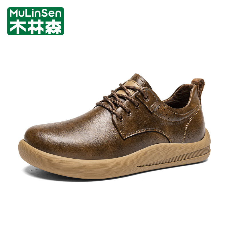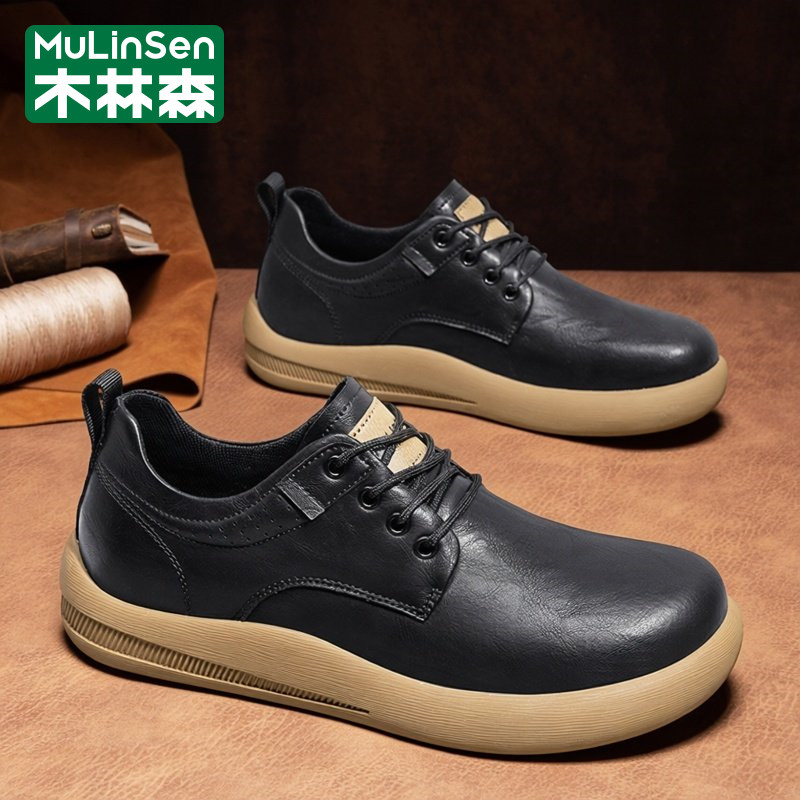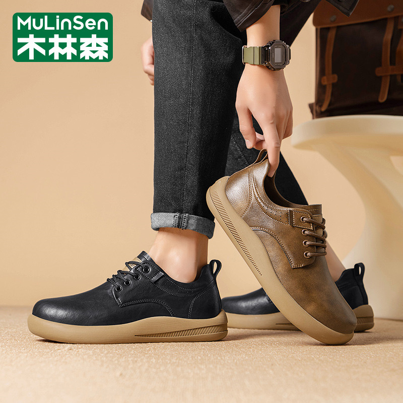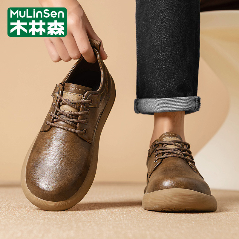 木林森皮鞋男春季2026新款休闲商务复古大头宽楦爸爸通勤工作板鞋