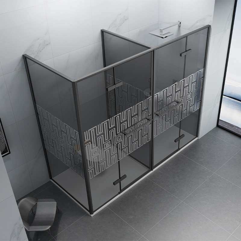 朗司平开门窄边框简约灰色干湿分离淋浴房304不锈钢淋浴加厚玻璃
