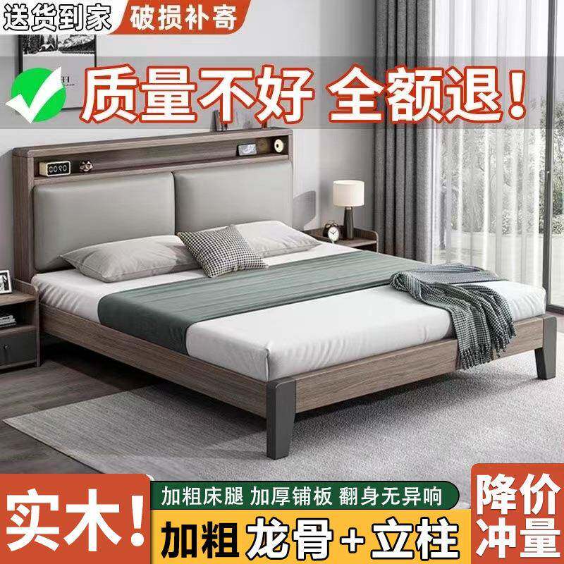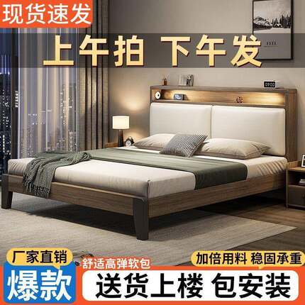 床实木床家用主卧1.8*2米双人床出租房用1.5米小户型简易1.2m单床