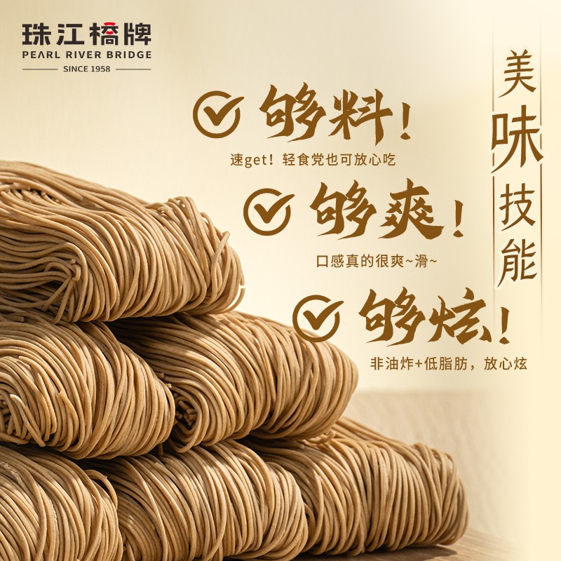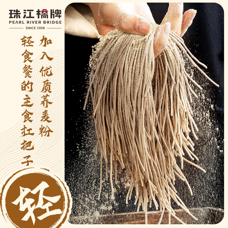 珠江桥牌荞麦面手工400g黑乔麦芥麦面条非油炸苦荞麦面低脂肪