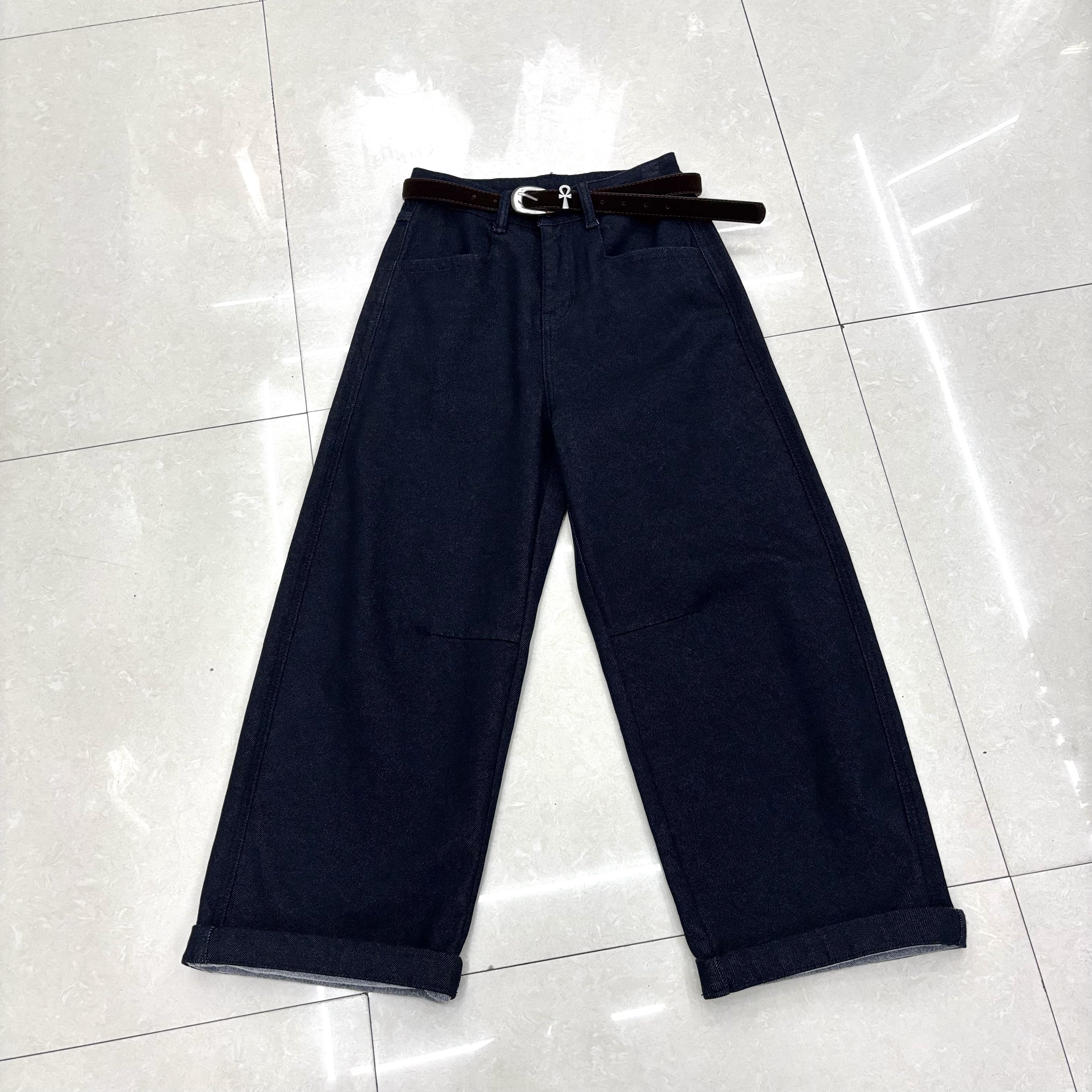 加厚牛仔裤女高腰宽松显瘦弹力水洗磨白九分裤阔腿裤3128