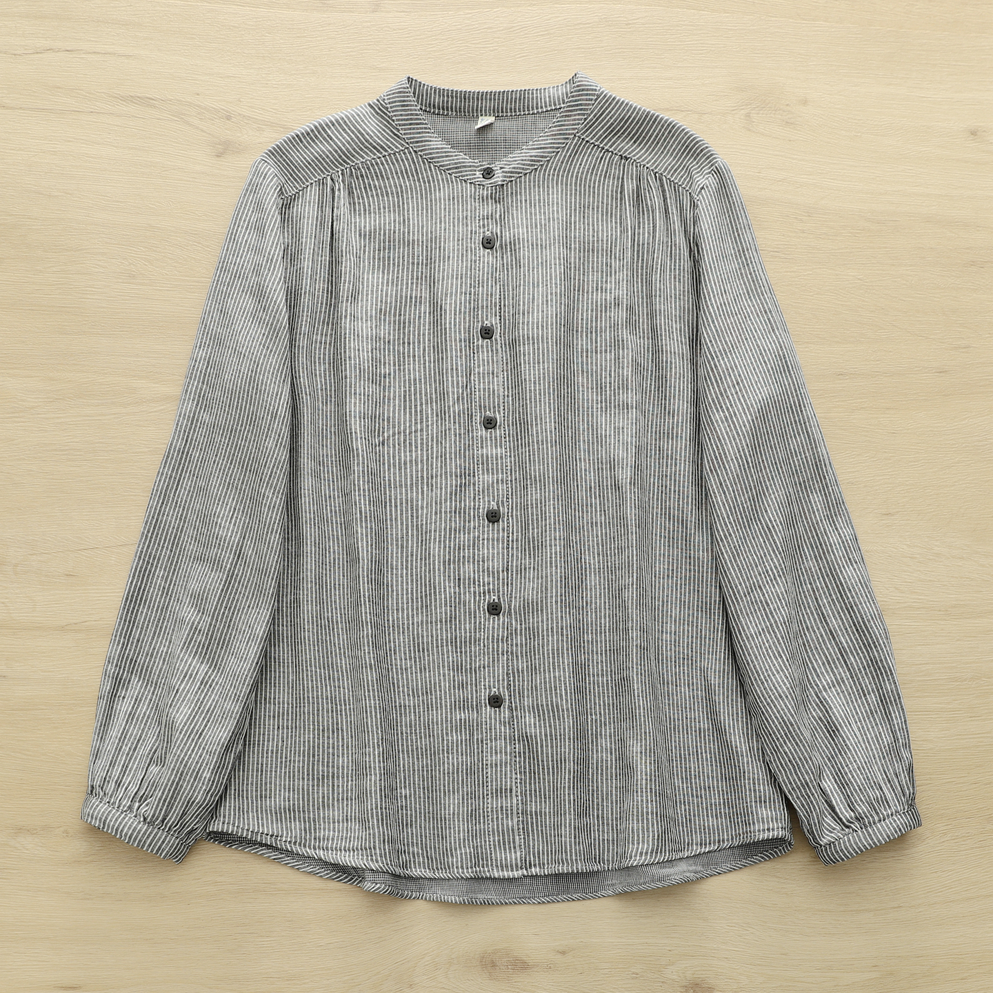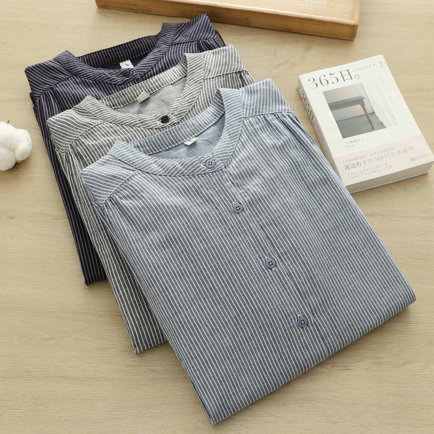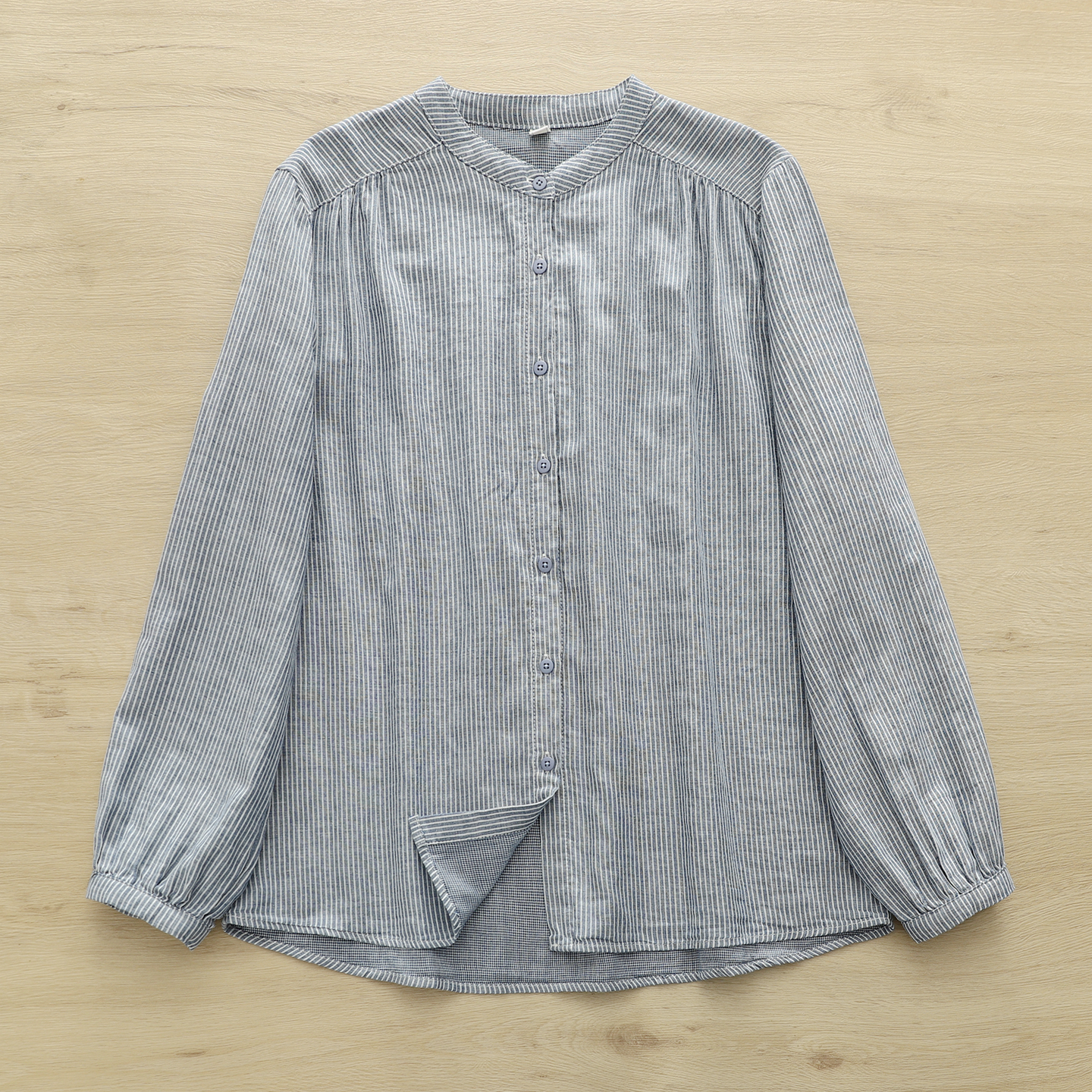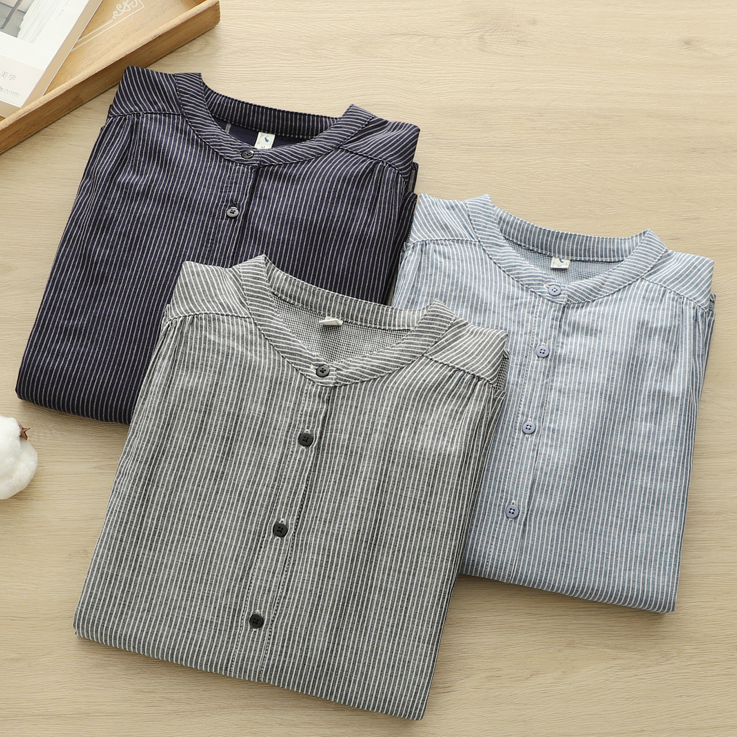 2025秋季文艺小清新竖条纹立领双层棉纱衬衫女长袖打底衫学生大码