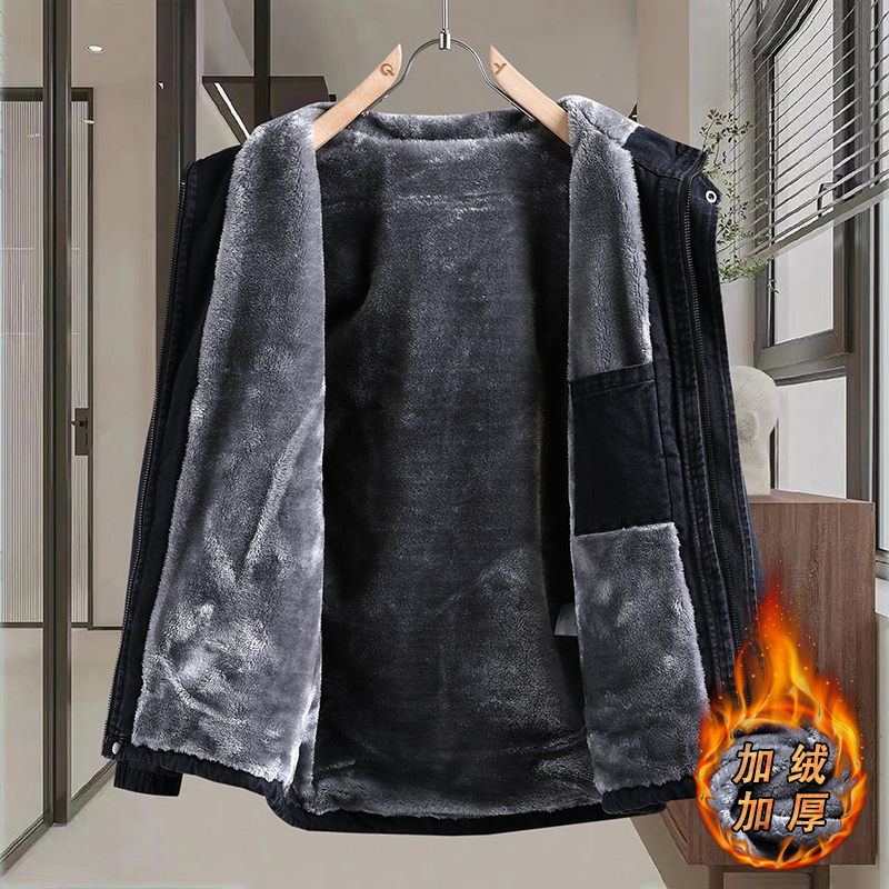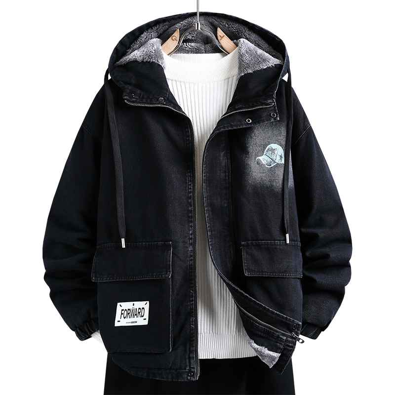 青少年秋冬季加绒加厚牛仔外套男初高中学生宽松休闲连帽夹克褂子