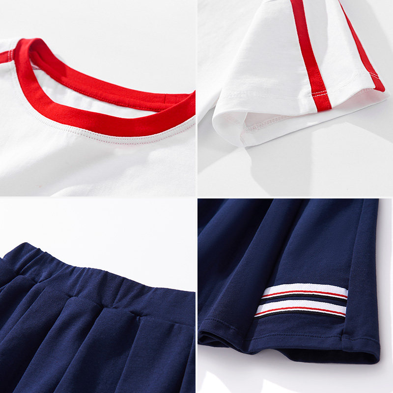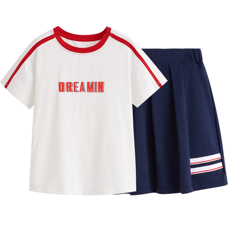 euv 女童夏季套装两件套儿童短袖纯棉薄款百褶裙中大童学院风夏装