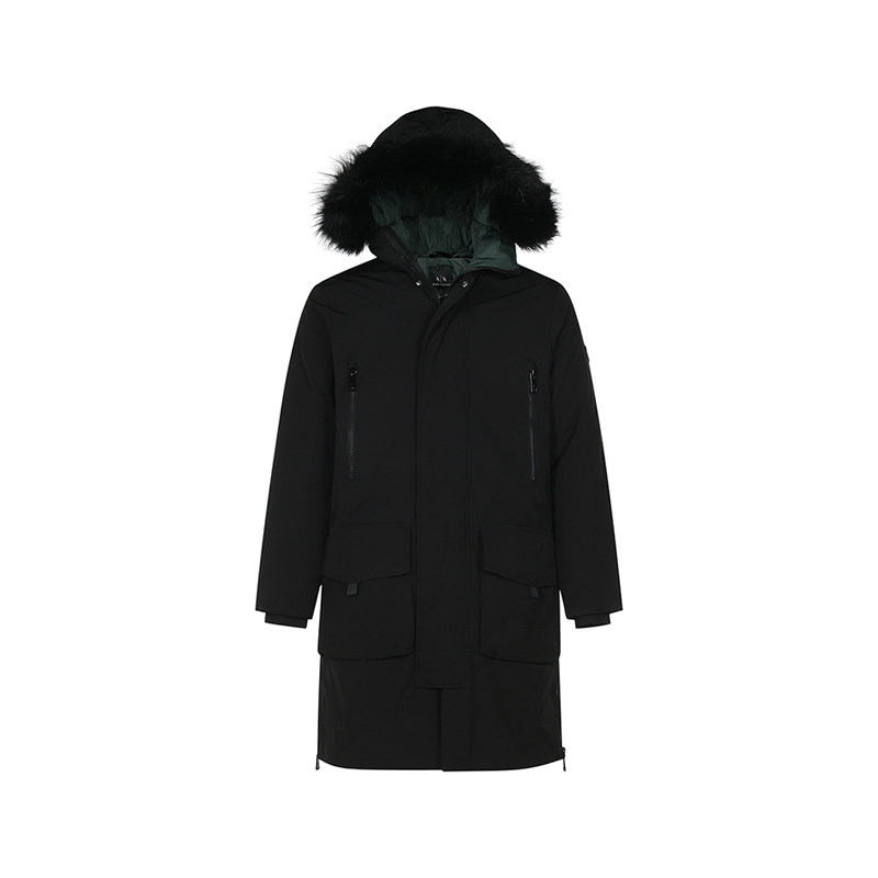 Armani阿玛尼AX 男士中长款连帽棉服外套银泰百货 300095
