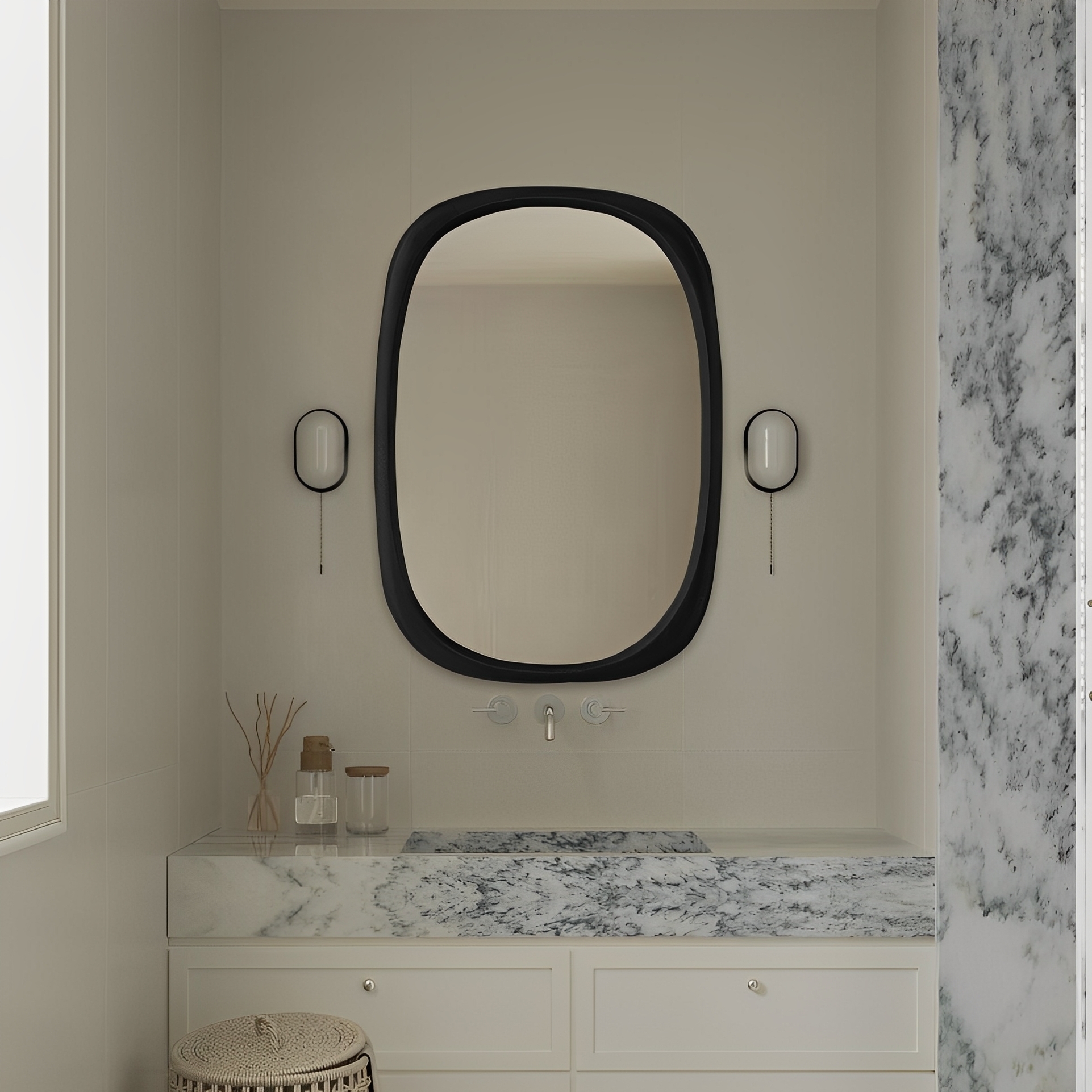 法式轻奢浴室镜椭圆异形卫生间洗手台面镜子壁挂复古侘寂风梳妆镜