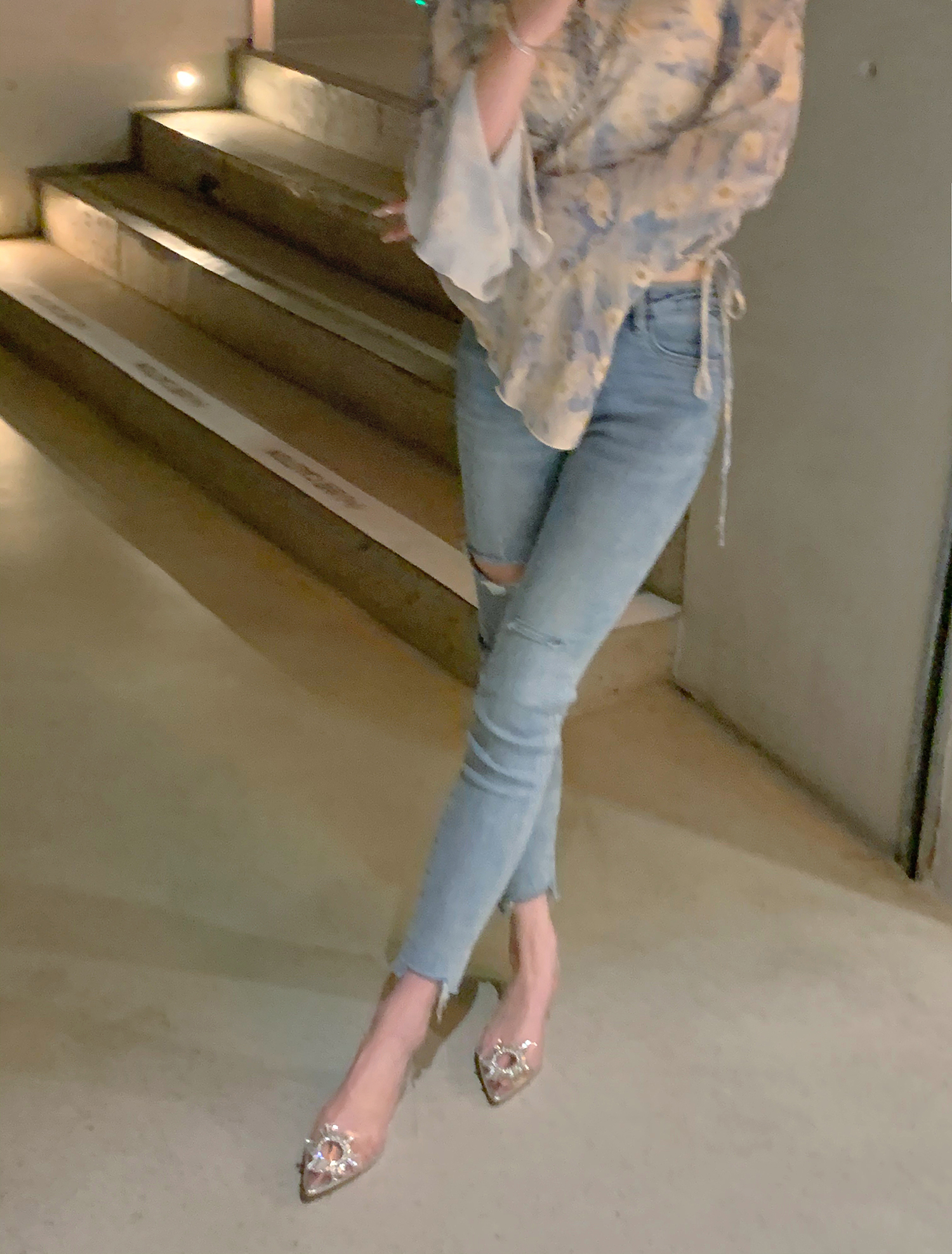 【benefanfan】梦幻仲夏真皮大底水钻中跟包头凉鞋女透明高跟鞋