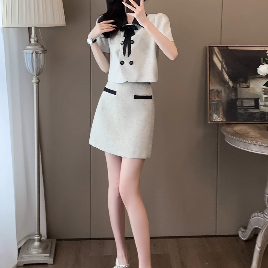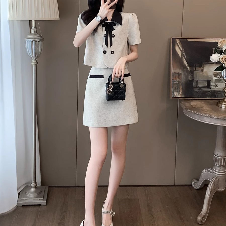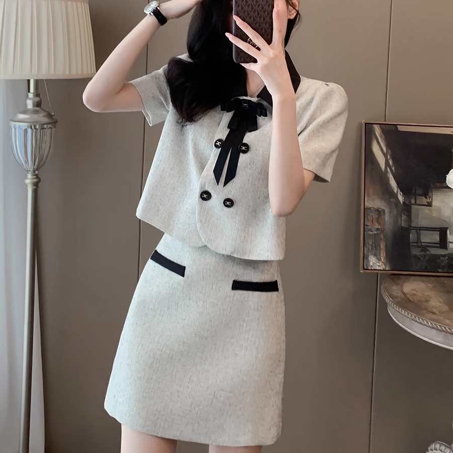 夏季减龄洋气时尚气质小香风初恋清纯奶甜套装女小个子裙子两件套