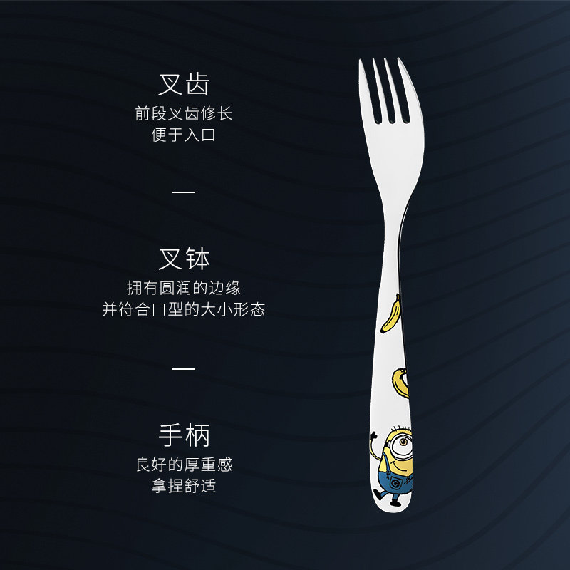 德国WMF福腾宝小黄人户外露营餐具6件套儿童不锈钢刀叉勺子盘子