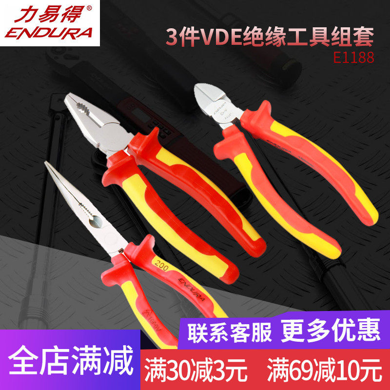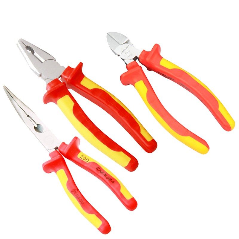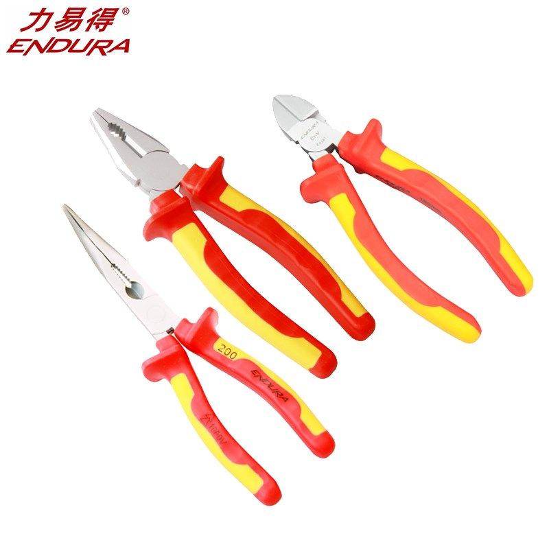 ENDURA力易得绝缘虎钳钢丝钳尖嘴钳斜嘴钳3件VDE耐压钳组套E1188