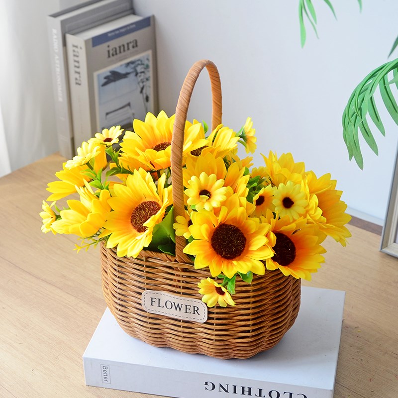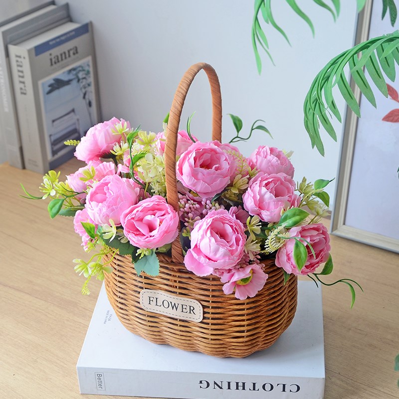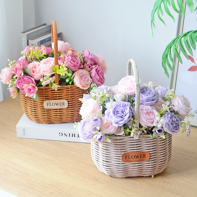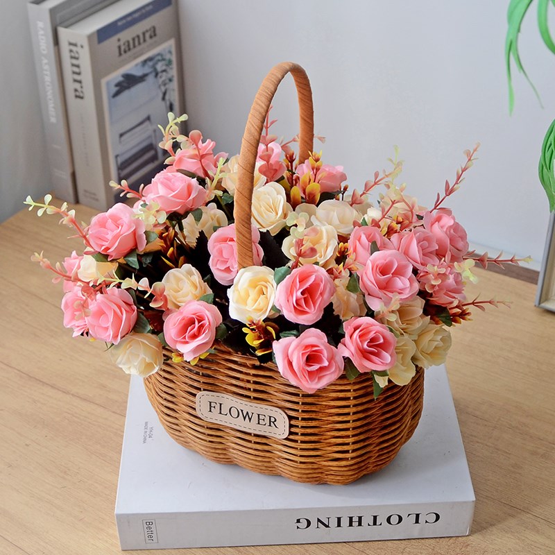 藤编花篮手提花篮插花花篮鸡蛋篮假花仿真花户外拍照Y摄影花篮道
