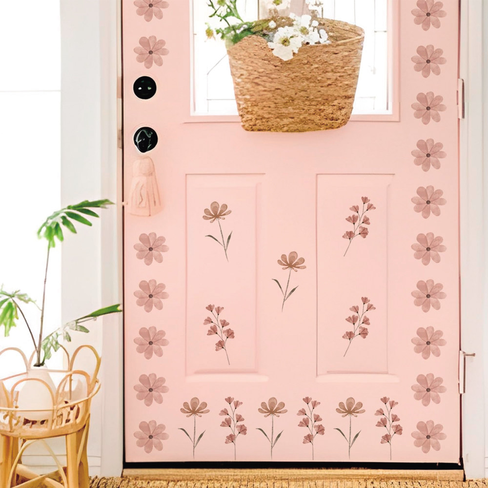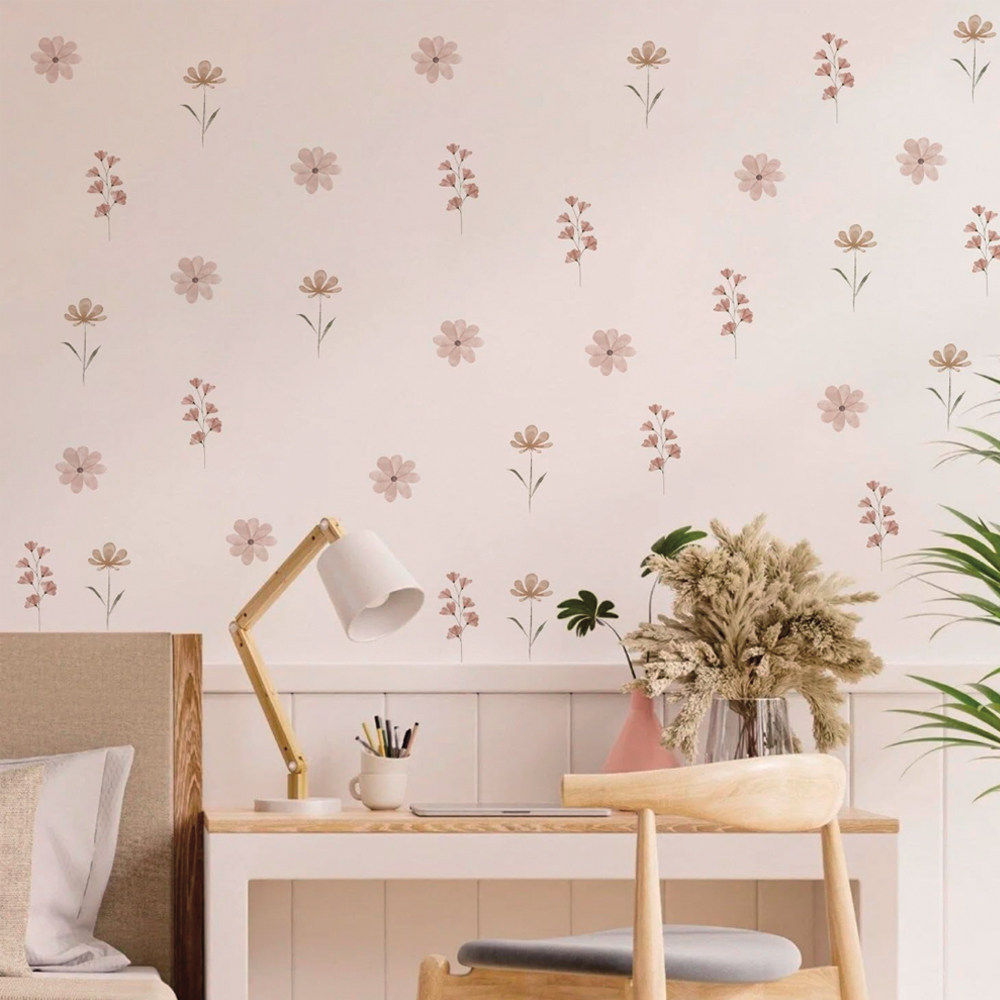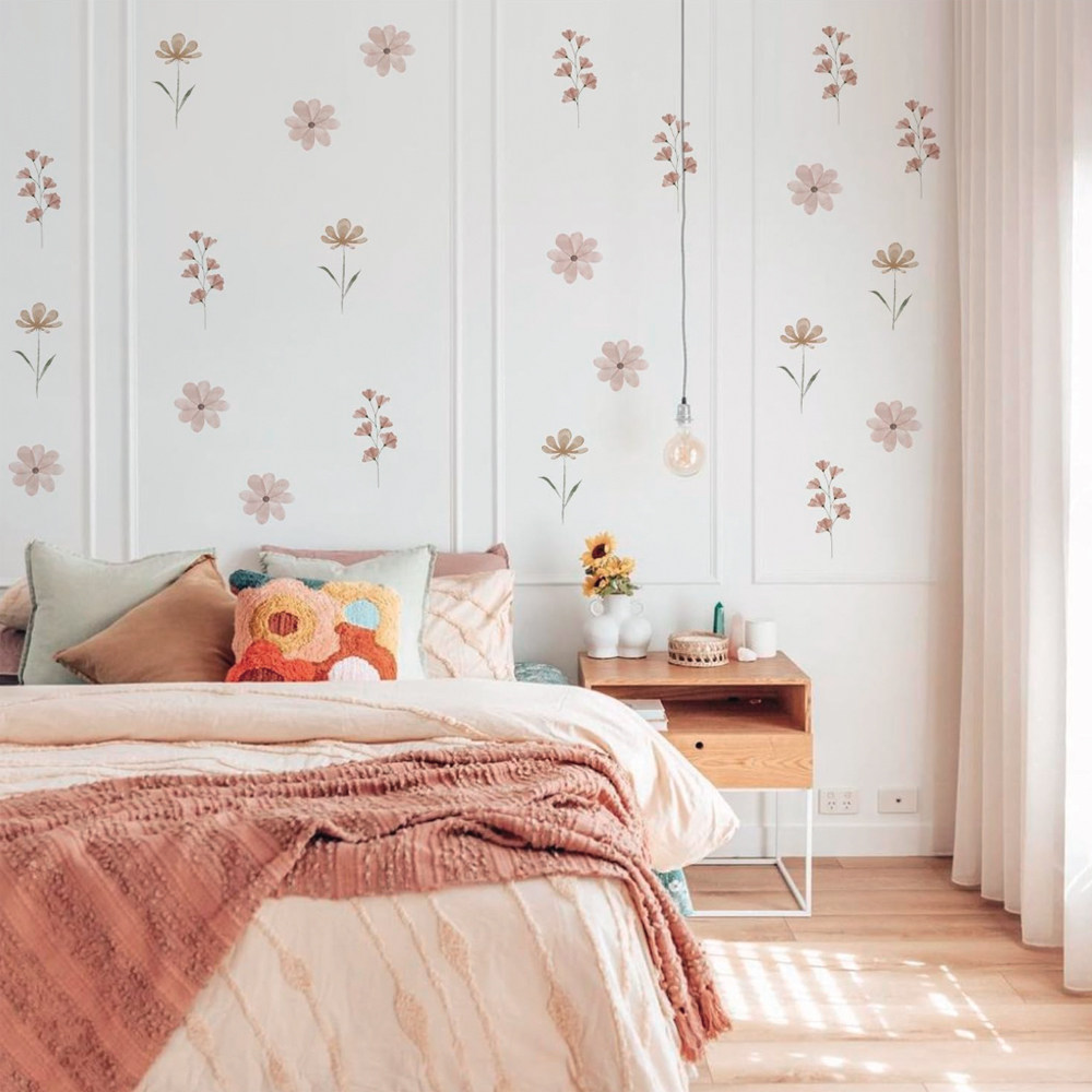 北欧ins波西米亚水彩粉色花朵卧室儿童房背景卡通自粘墙贴纸