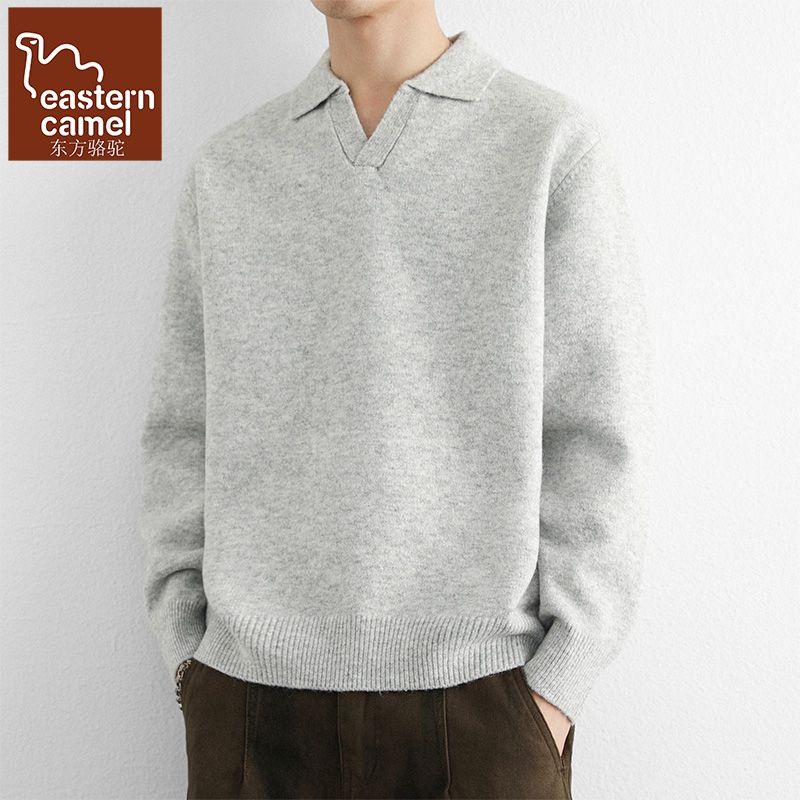 翻领针织衫男士纯色高级感青年成熟风简约海鸥领毛衣男毛线衣秋冬