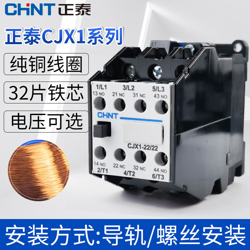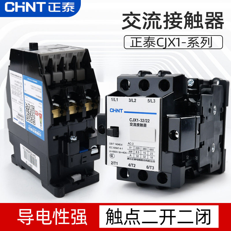 正泰交流接触器CJX1-32/22 220V单相9/22 45A 140A三相380V二开闭