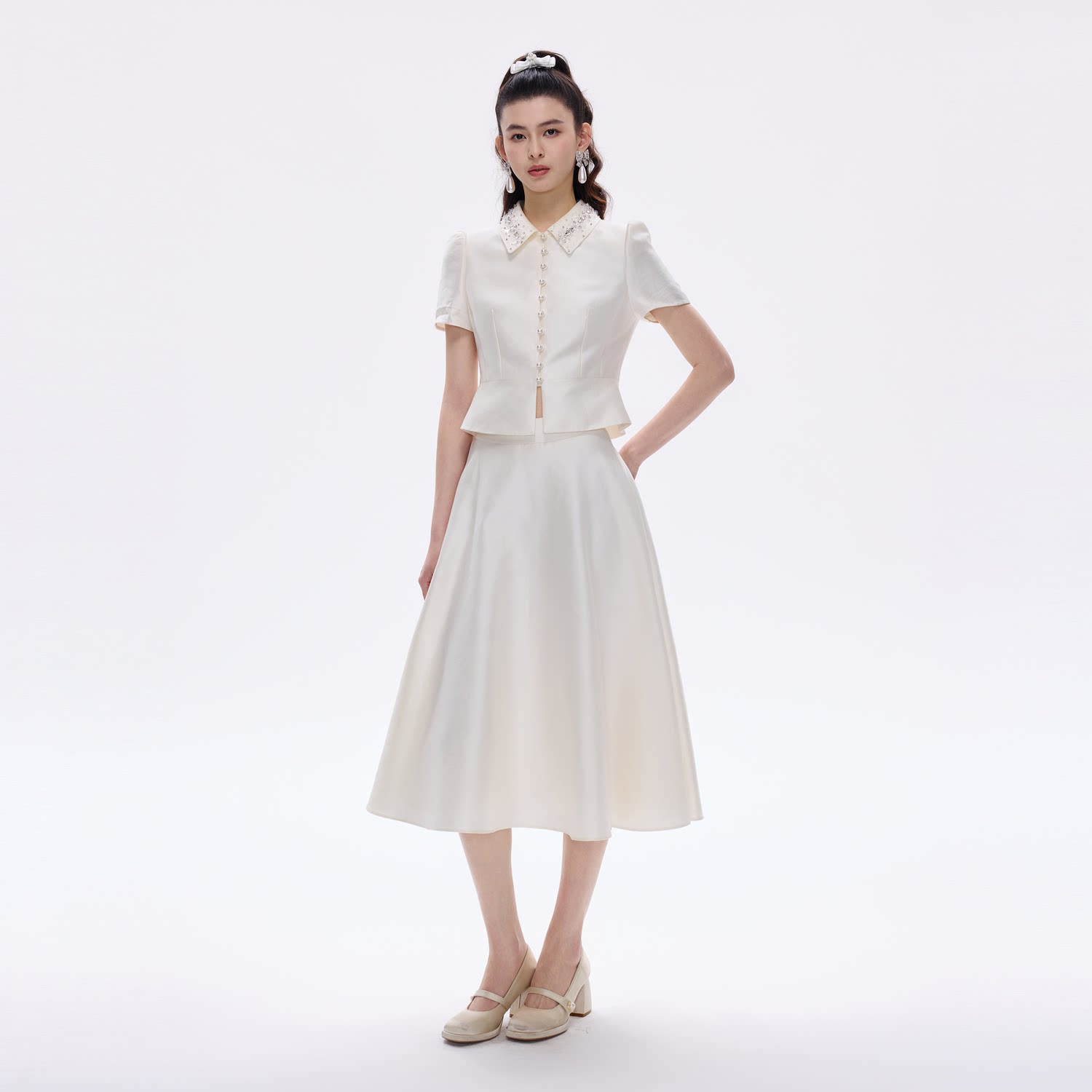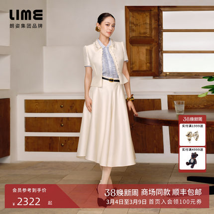 【商场同款】朗姿LIME莱茵缎光斜纹钉珠套装上衣半裙2026夏季新款