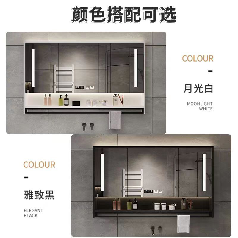 智能浴室镜柜挂墙式洗手间镜子带灯除雾收纳置物柜单独储物一体柜