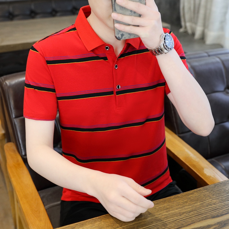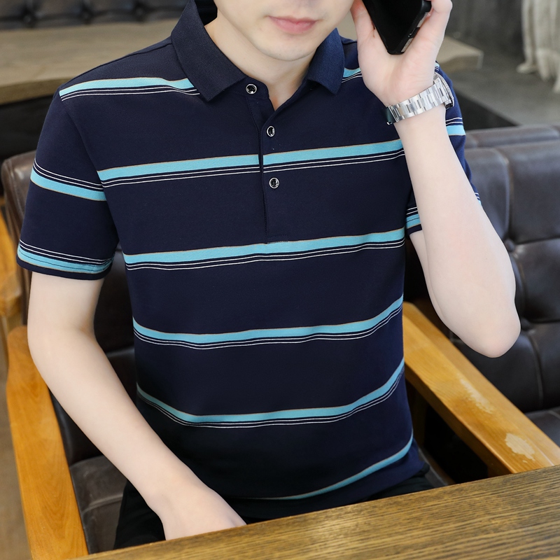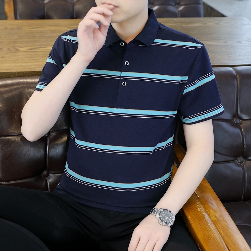 【厂家直销】男士短袖T恤男纯色条纹务中青年爸爸装男款休闲上衣p