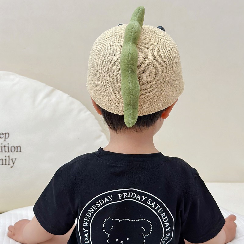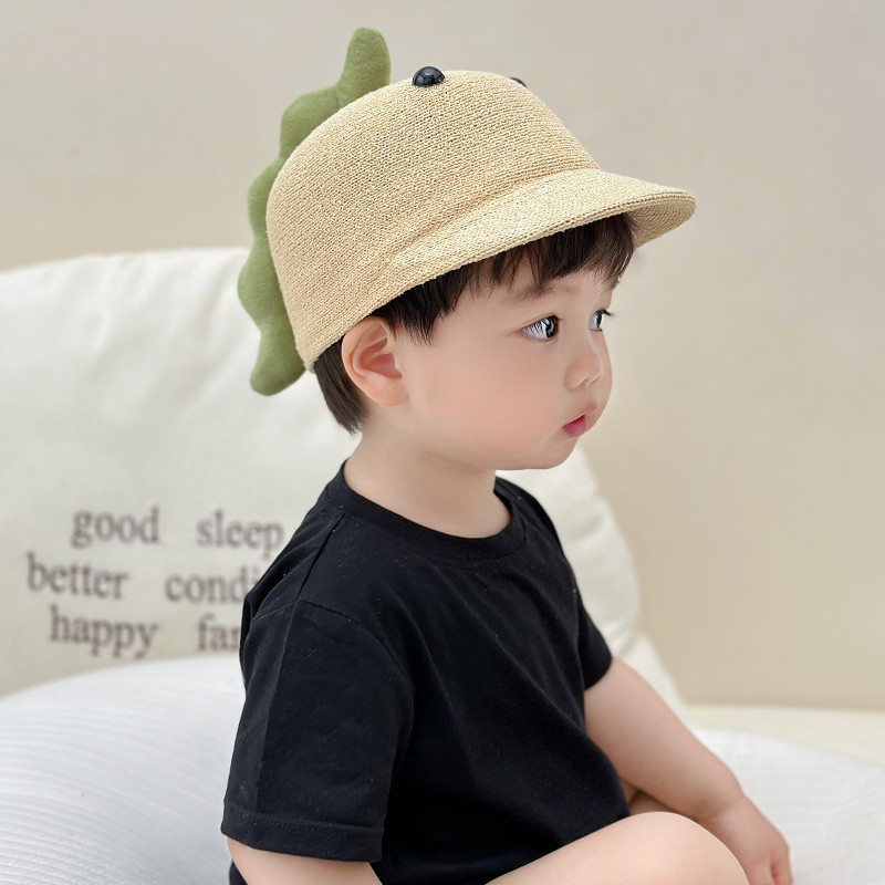 婴儿遮阳帽子夏季薄款男童恐龙鸭舌帽男宝宝夏天出游透气防晒草帽