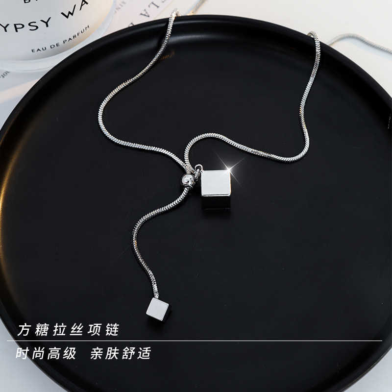 方糖拉丝项链女简约精致小众设计感长款毛衣链2025新款爆款配饰品