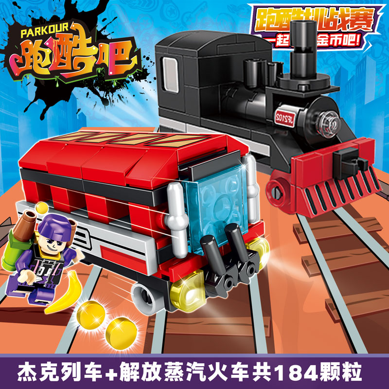 新款跑酷列车拼装积木6+男孩玩具