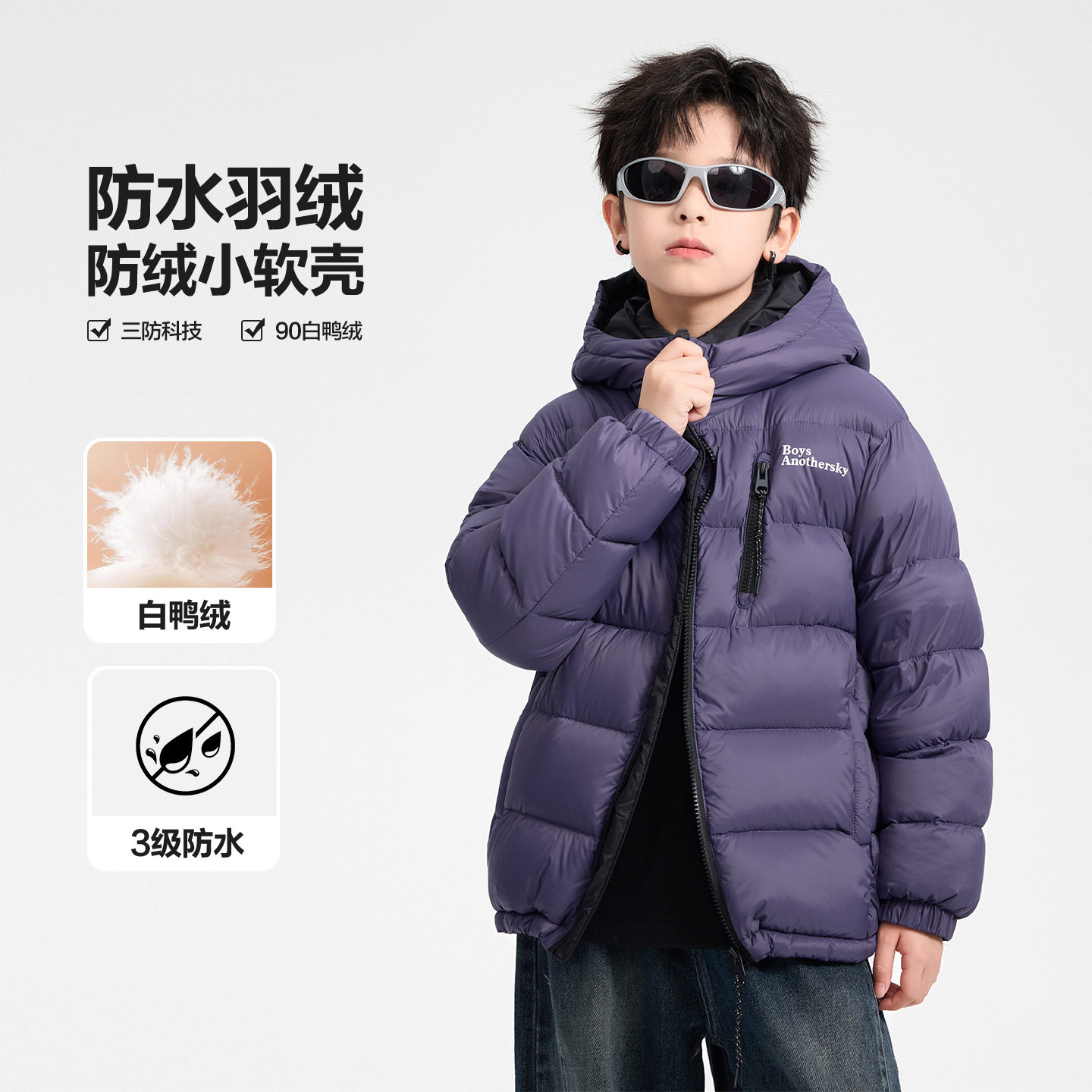 宝贝亨男大童冬季90白鸭绒防水连帽羽绒服2025新男孩短款防寒外套