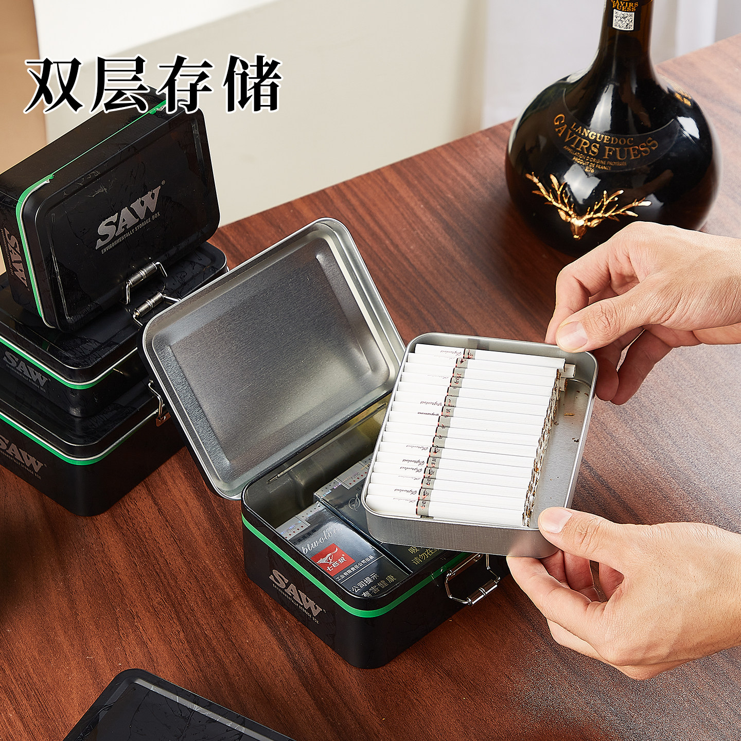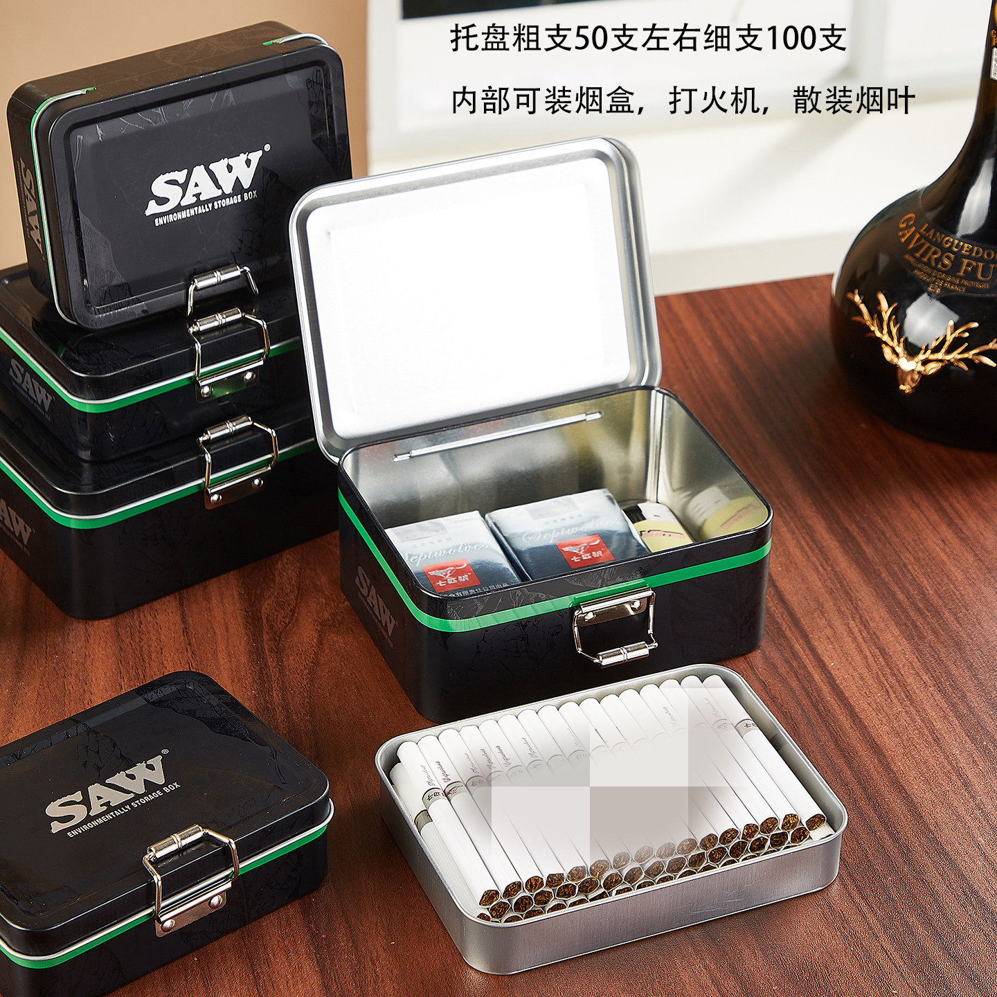 酷炫大容量锁扣密封金属烟盒防潮