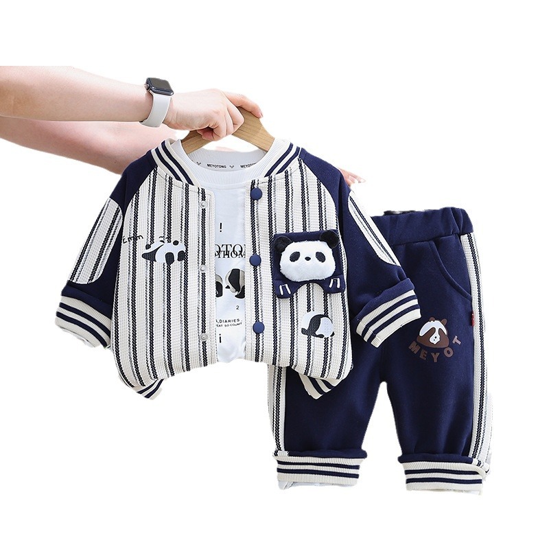 男童秋装套装2025新款婴儿童春秋季卡通棒球服三件套宝宝洋气潮衣