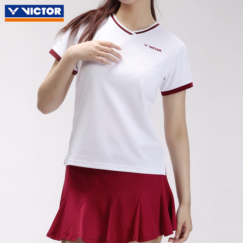 VICTOR威克多胜利羽毛球服训练系列女款运动短袖T恤黄雅琼T-51038