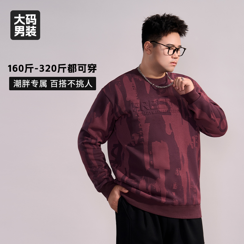 乔拉格大码男装2024秋冬加绒卫衣高街潮牌宽松显瘦圆领套头上衣