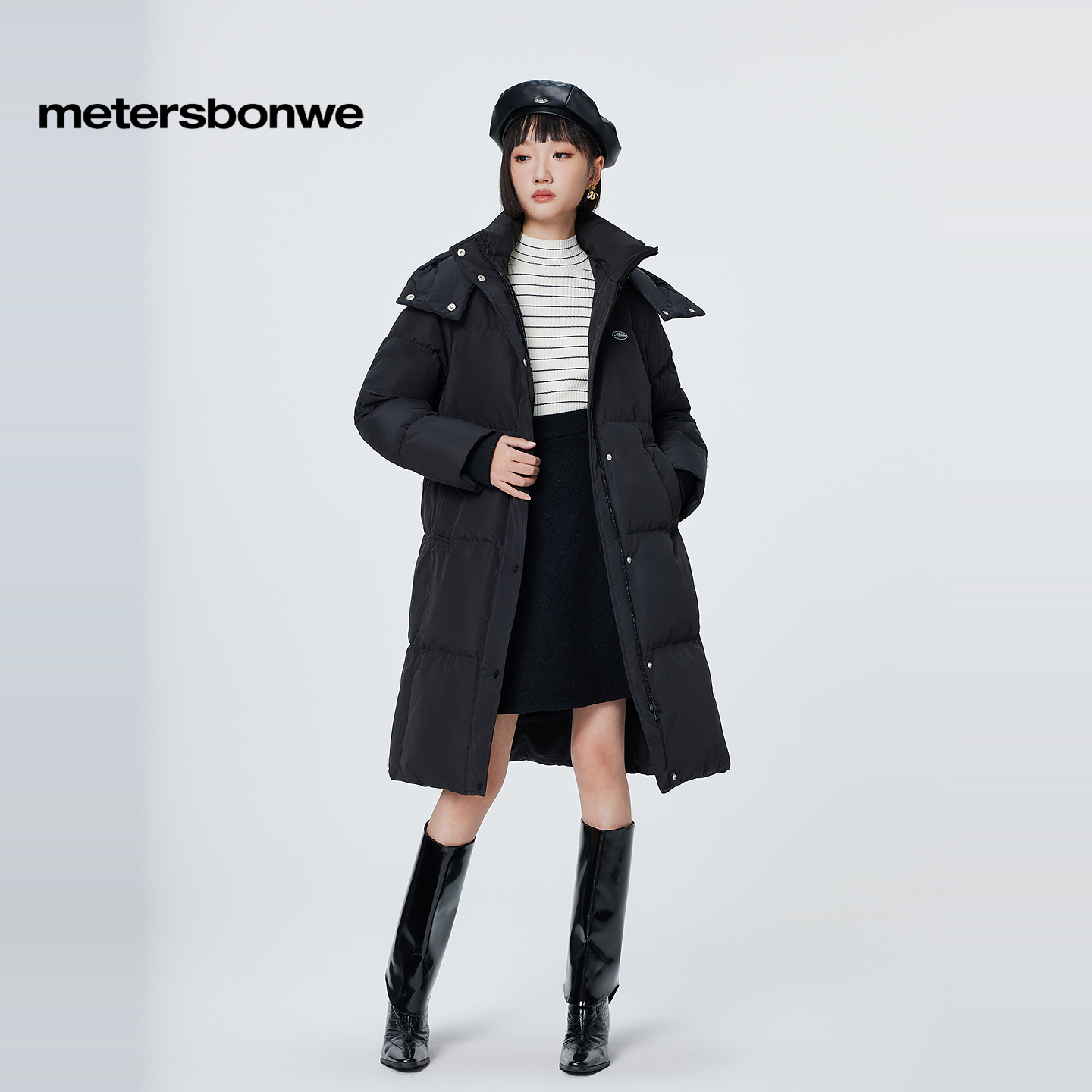 美特斯邦威羽绒服女士冬季新款简约长款连帽保暖鸭绒羽绒外套女