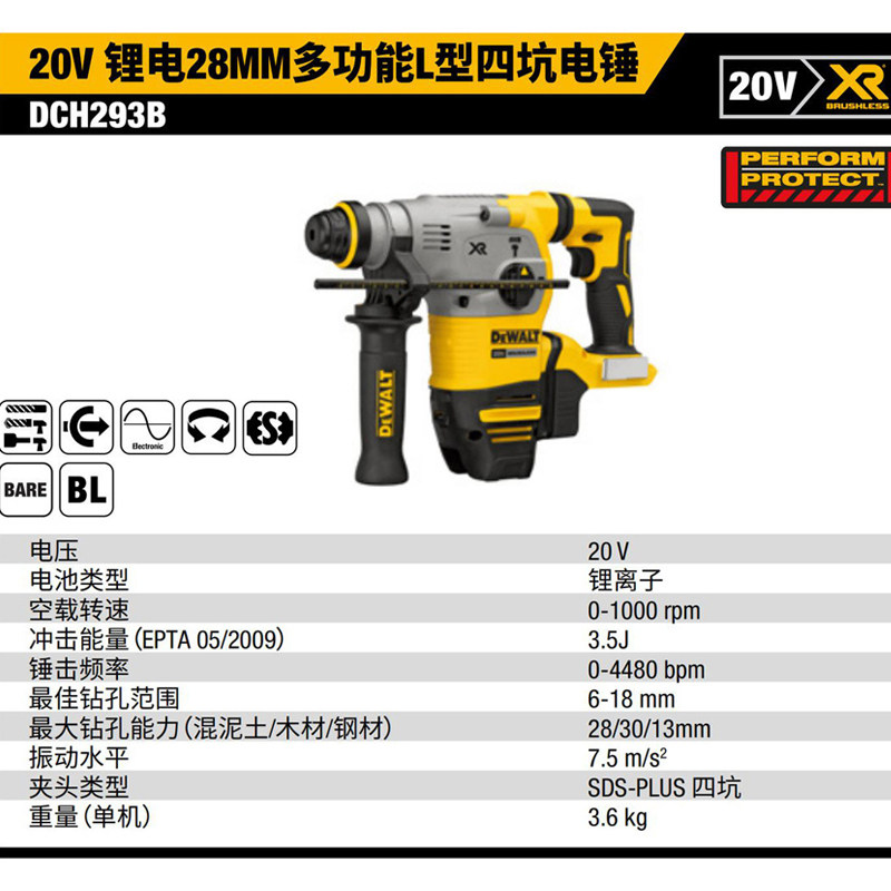 得伟DCH293原装正品捷克进口20V锂电无刷四坑电锤电钻镐多用减震