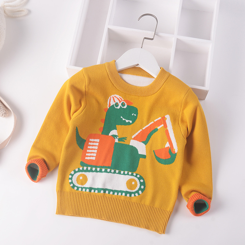 2024年秋冬男童双层针织套头毛衣女童中小童圆领毛线衣儿童打底衫
