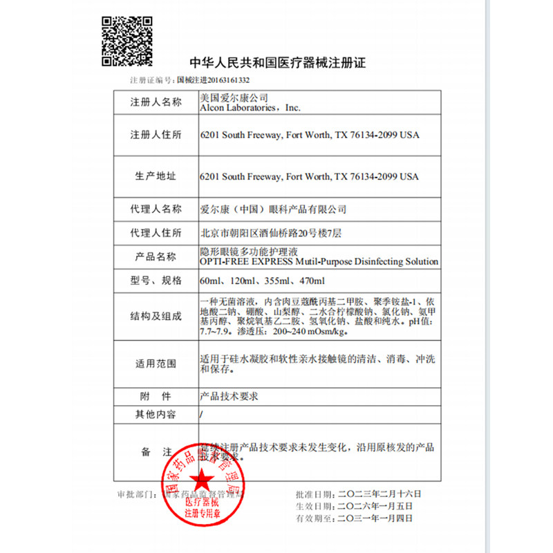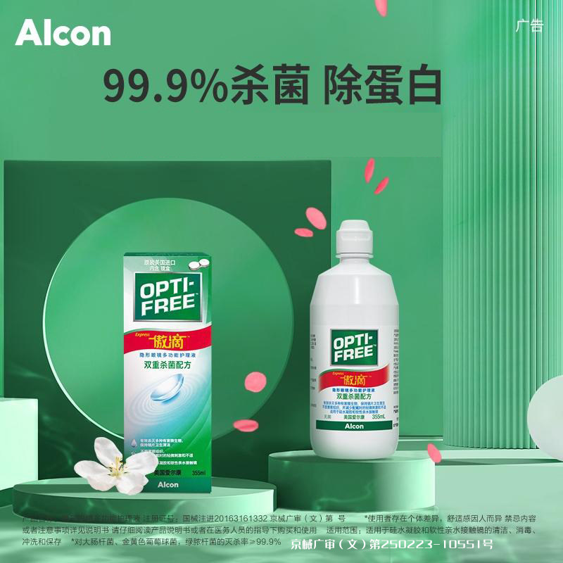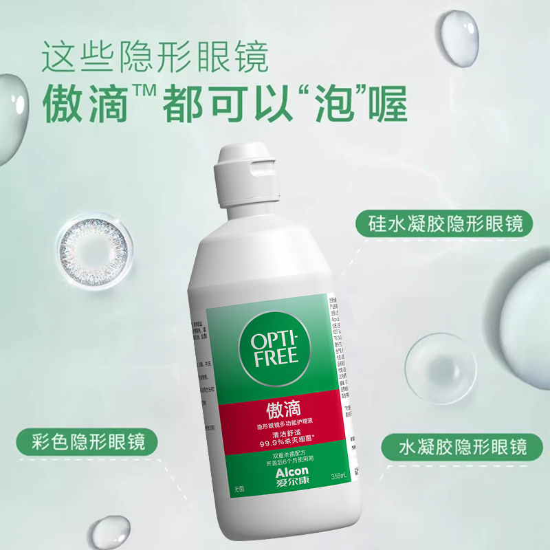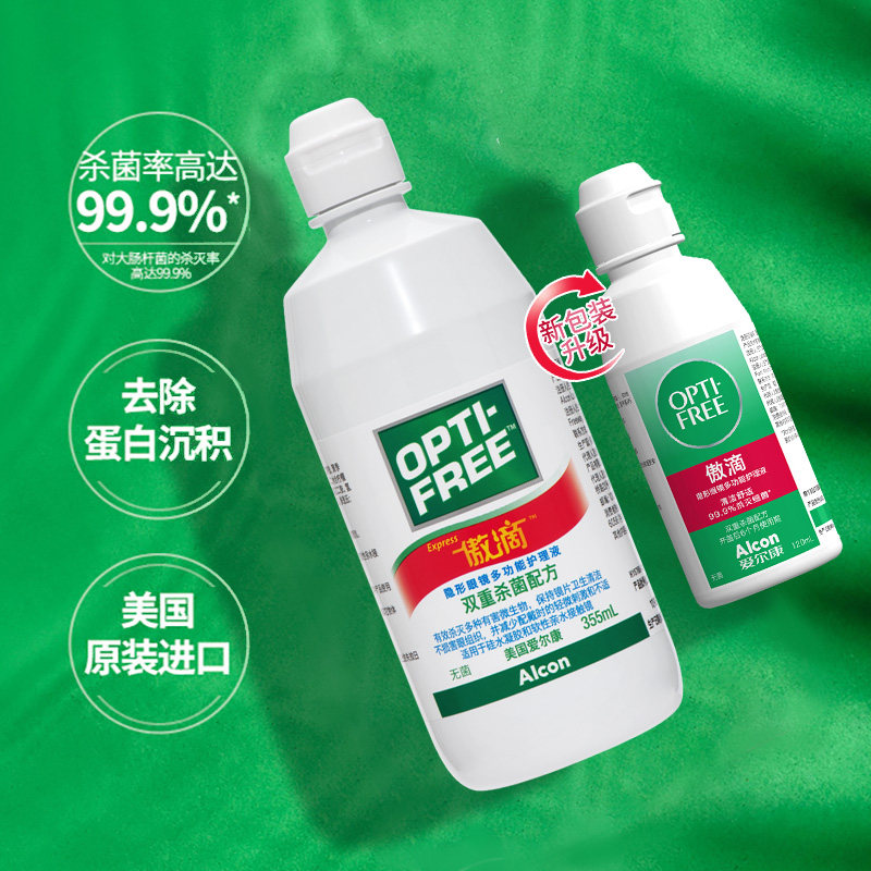 爱尔康傲滴护理液隐形美瞳通用355*2+120除蛋白进口多功能药水瓶