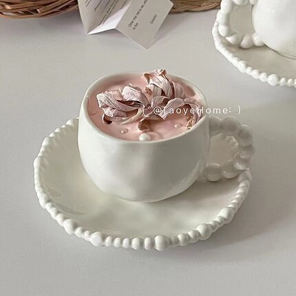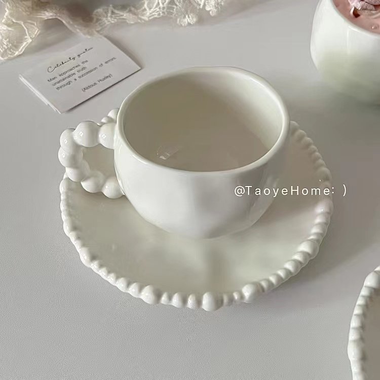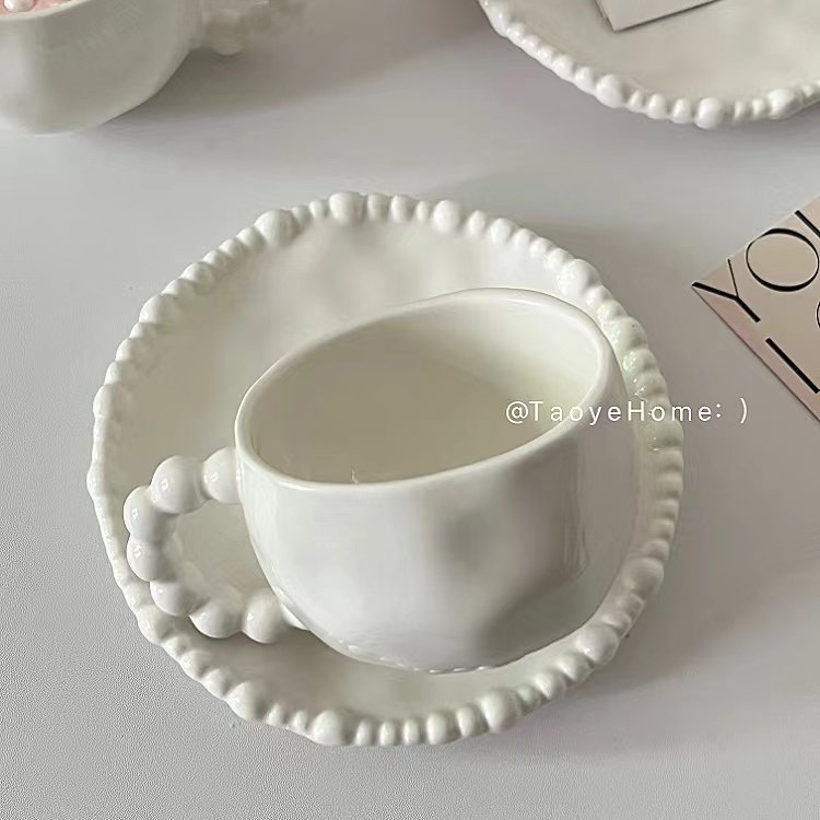 Ins法式陶瓷手捏不规则咖啡杯碟下午茶餐具马克杯高颜值杯子小众