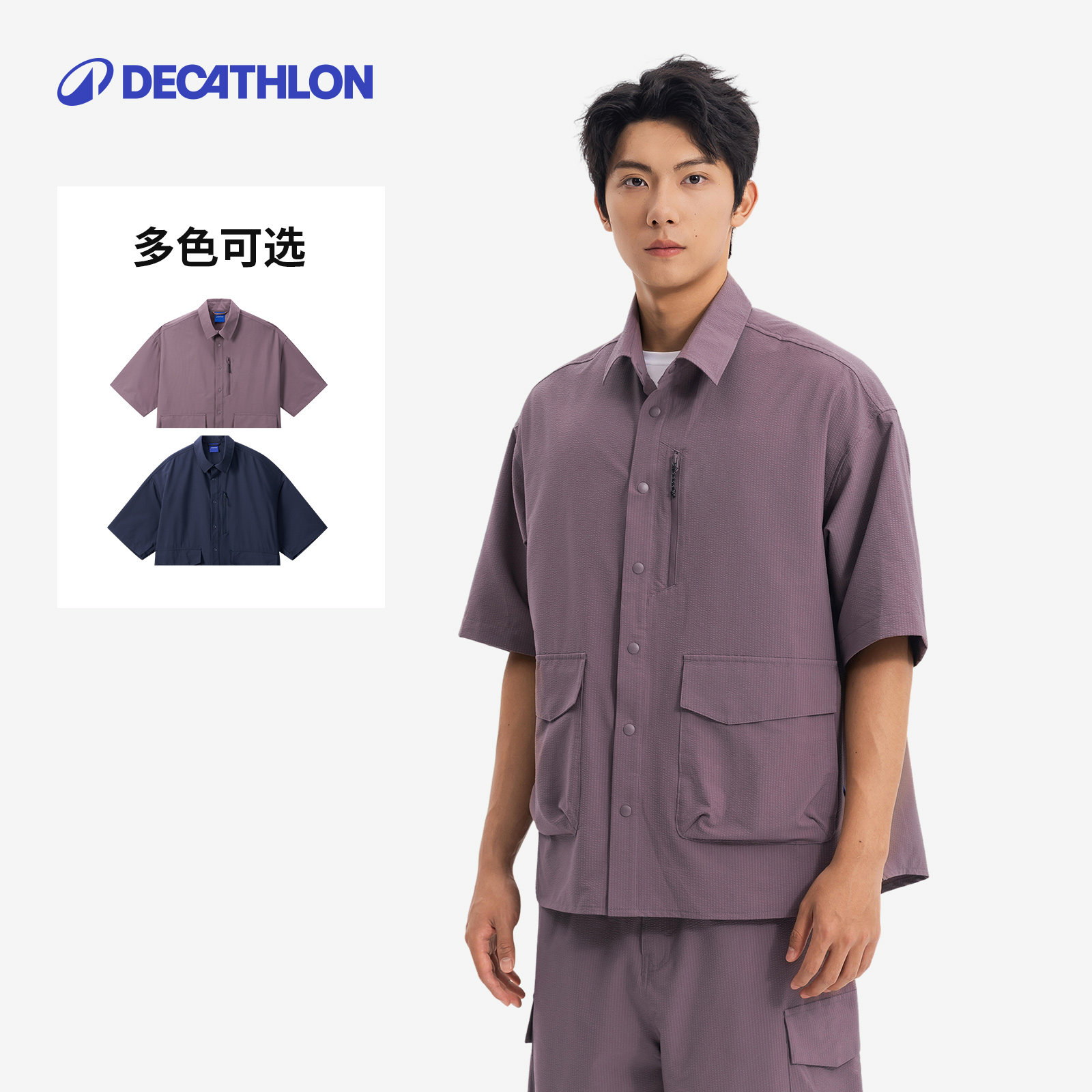 迪卡侬SPW365531泡泡纱短袖男夏衬衫透气宽松防晒运动速干T恤SAX2