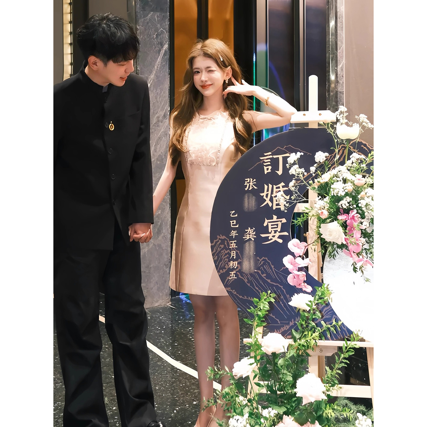 新中式男装西服套装高级痞帅立领垫肩中山装国风订婚穿搭唐装西装