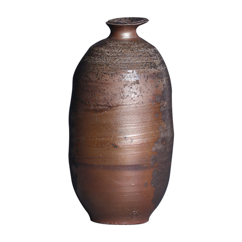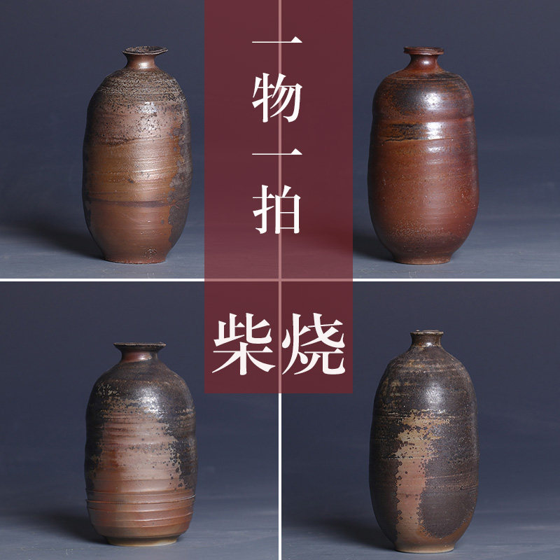 九木柴烧花瓶 纯手工柴烧复古花器小花瓶 简约创意茶道摆件茶道