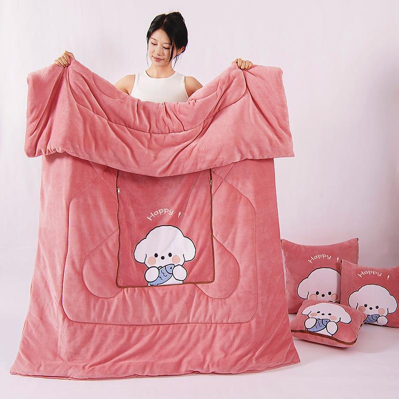 加厚保暖两用牛奶绒抱枕被子毯靠垫沙发汽车午睡枕头多功能被加绒