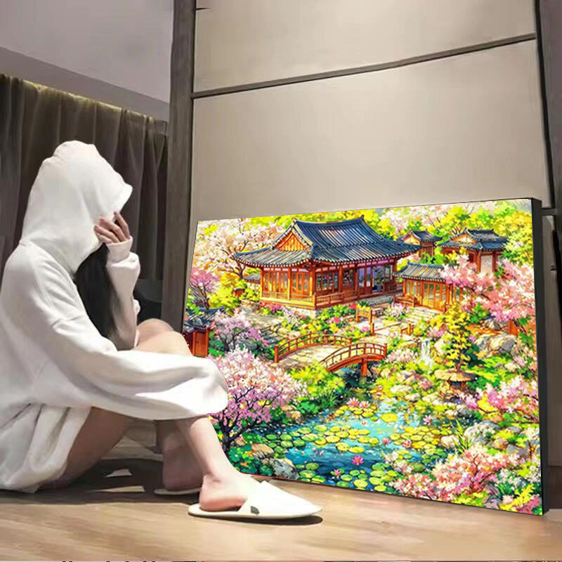 春夏秋冬数字油画手工diy填充绘色中国风丙烯油彩装饰画画治愈系