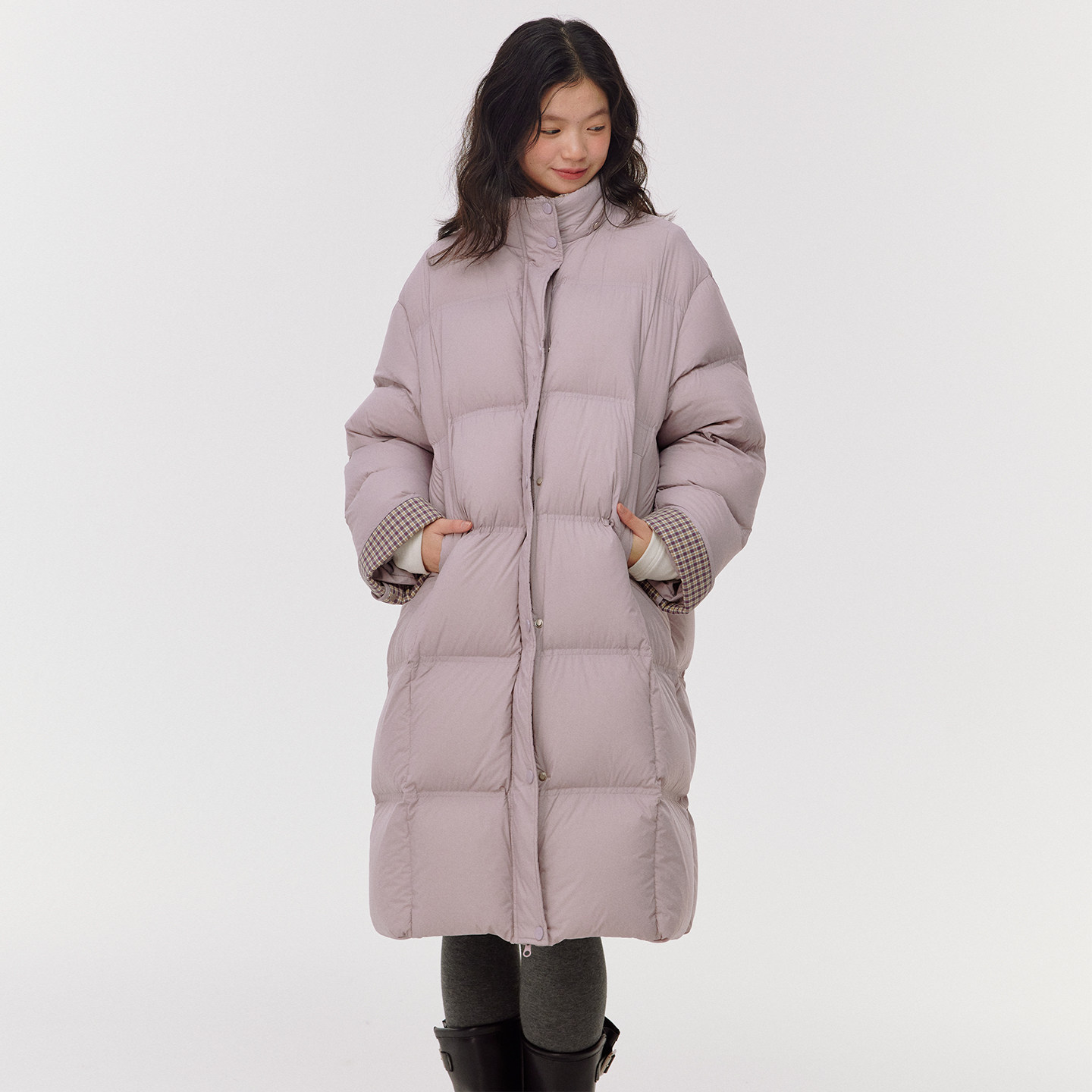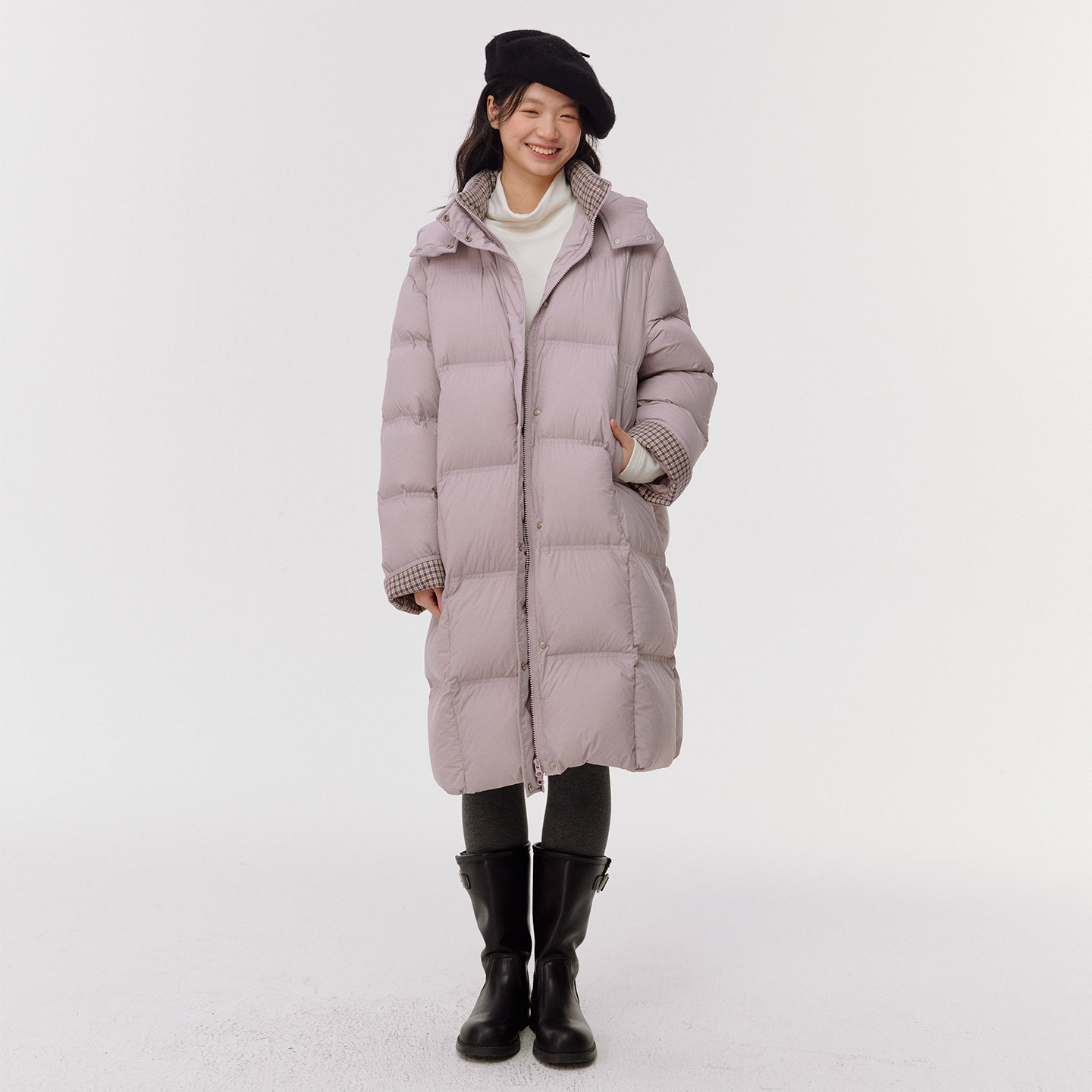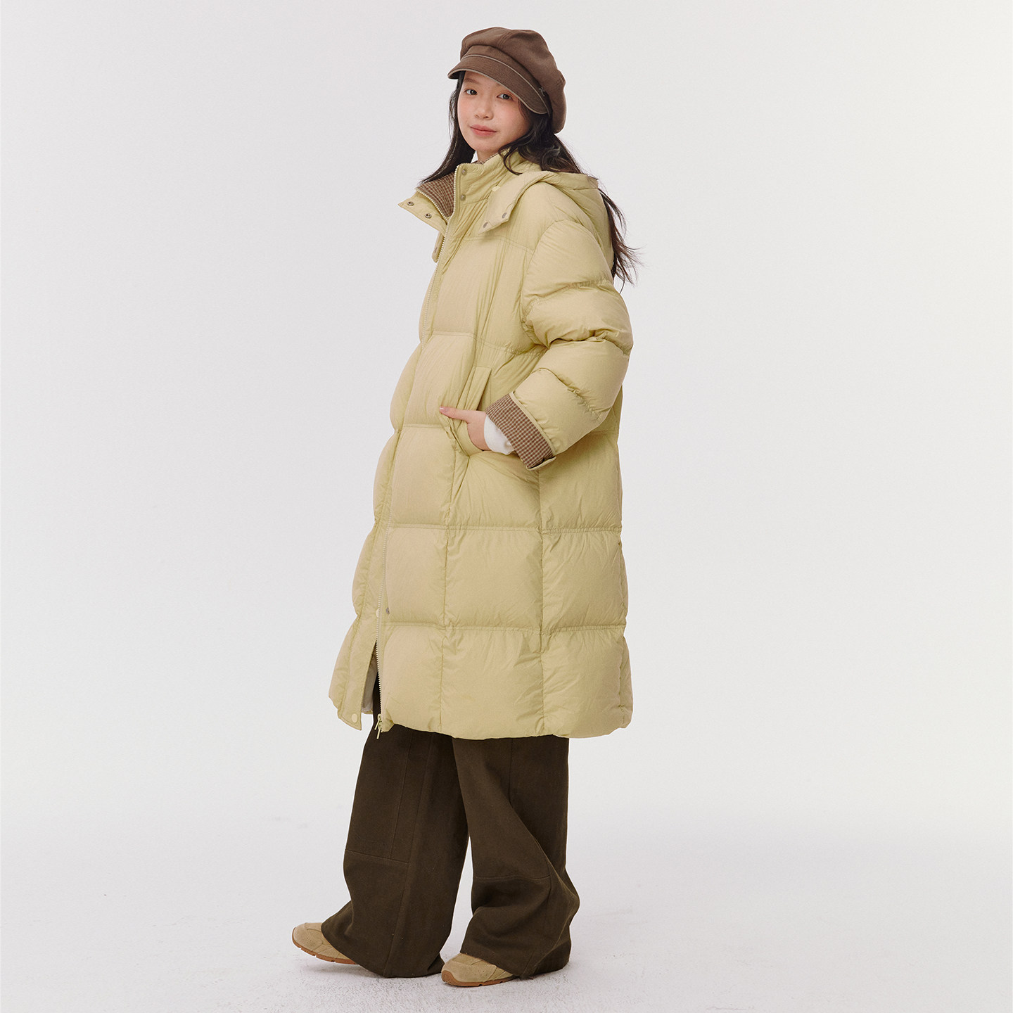 omont蛋挞复古无胆防绒连帽羽绒服2025冬中长款保暖90白鸭绒外套