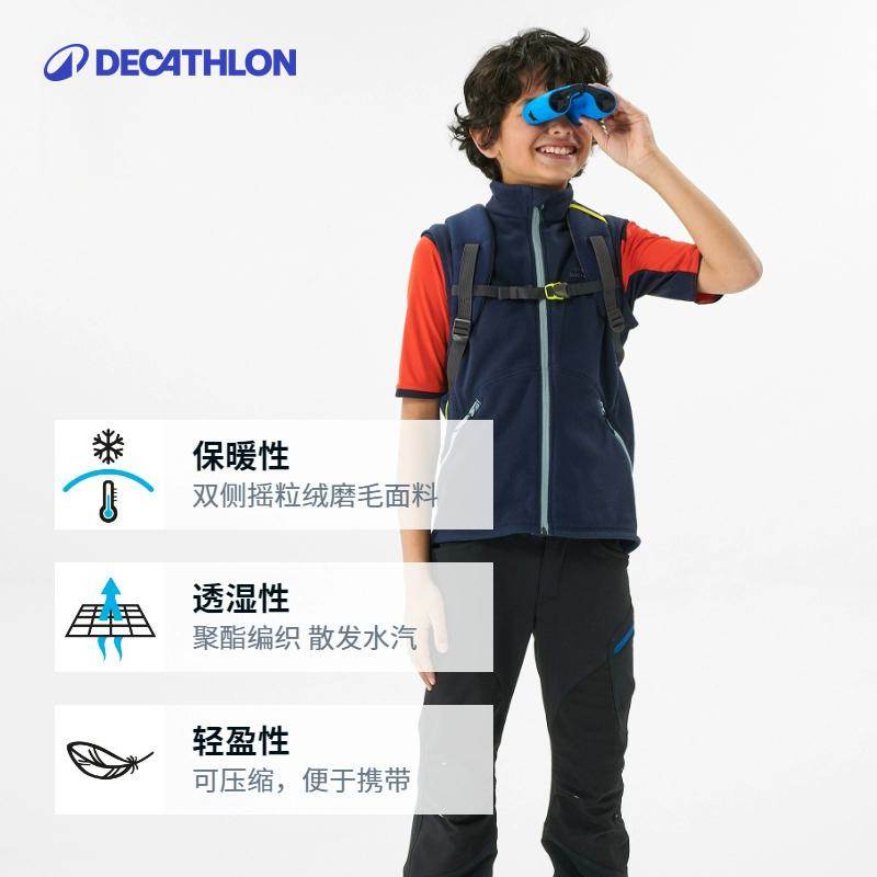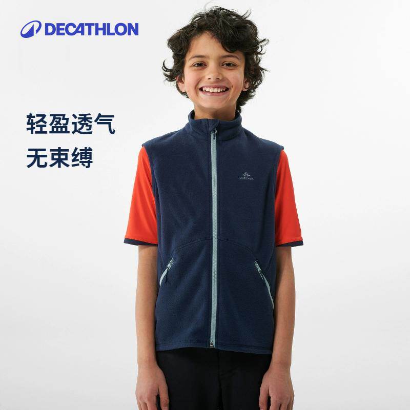 迪卡侬亲子装一家三口摇粒绒马甲运动外套男女童春秋保暖背心KIDS