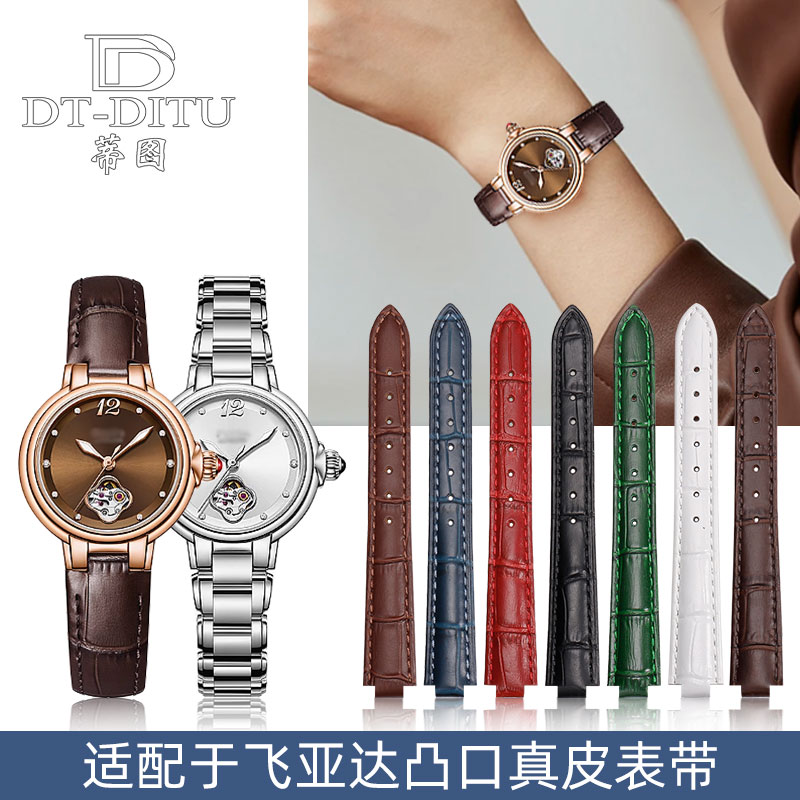 凸口手表带男女适配飞亚达柿柿如意鳄鱼纹真皮手表带女蝴蝶扣牛皮